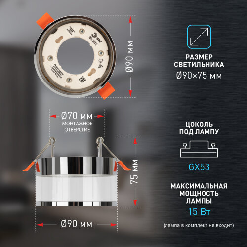 Встраиваемый светильник под лампу GX53 ЭРА KL82 CH хром интересное: