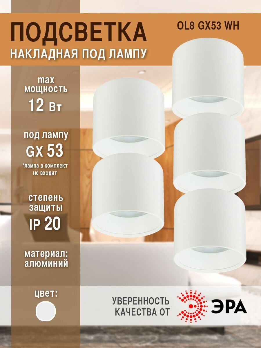 Накладной светильник, Спот, ОЛ8 под лампу Gx53, алюминий, цвет белый (комплект 5 шт.) интересное: