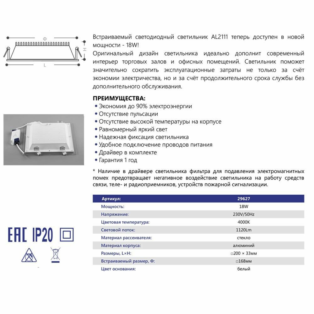 Светодиодный светильник Feron AL2111 встраиваемый 6W 4000K белый интересное: