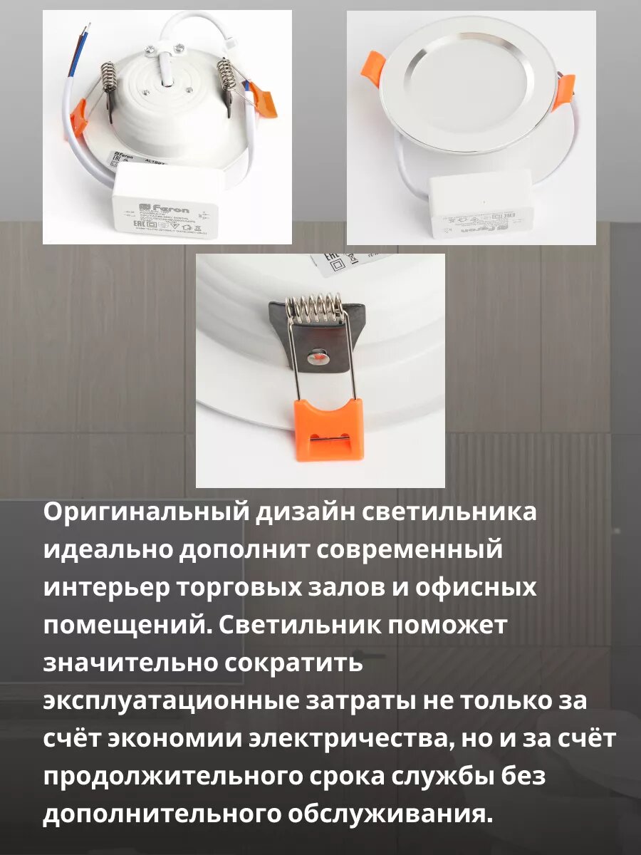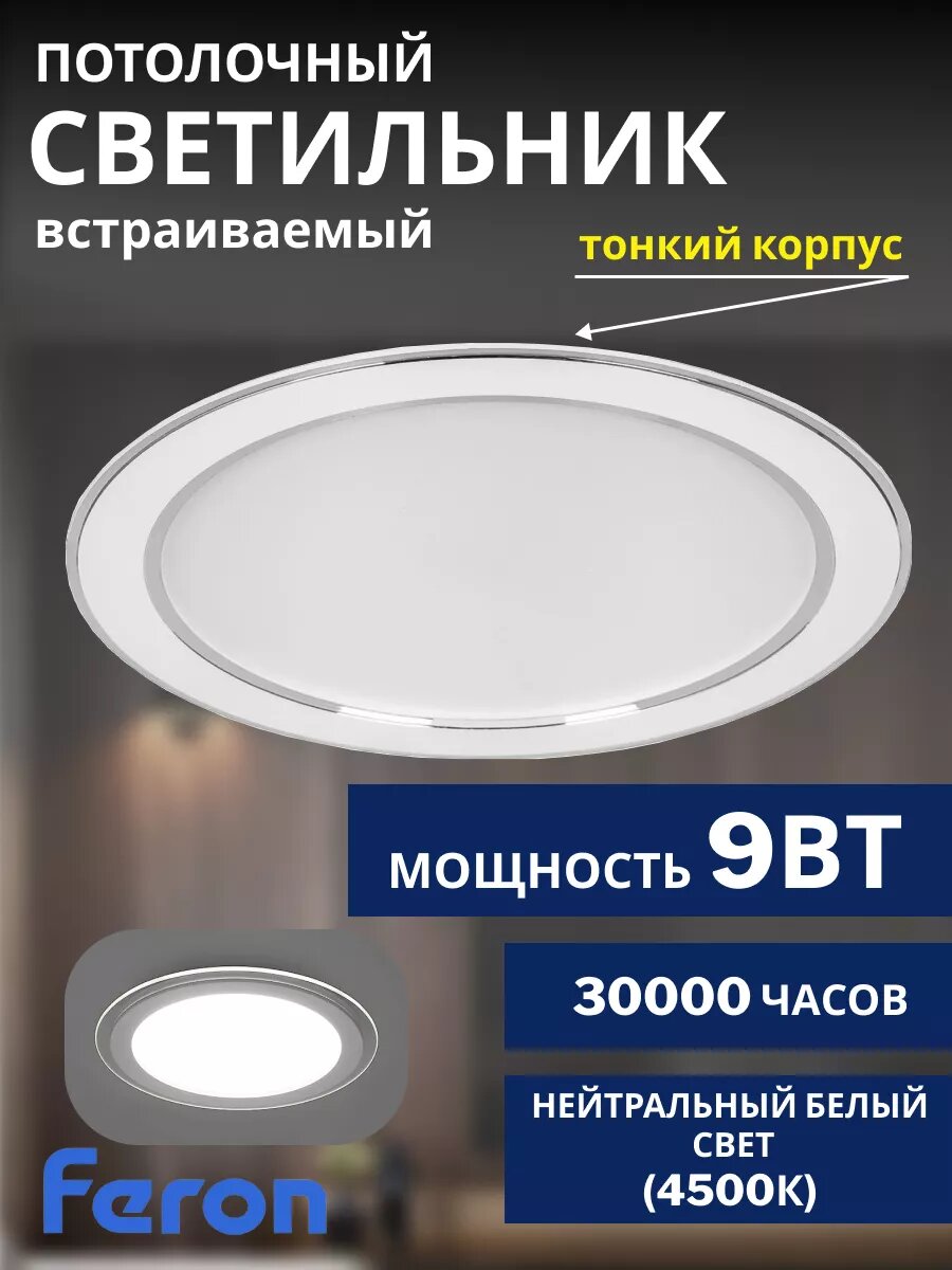 Потолочный светильник светодиодный FERON AL1527, 9 Вт, 4000К, встраиваемый, белый интересное: