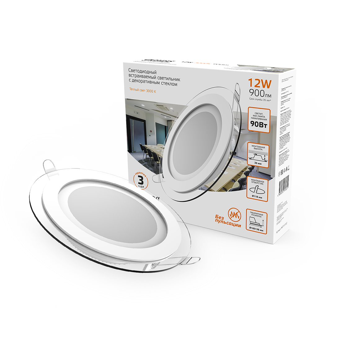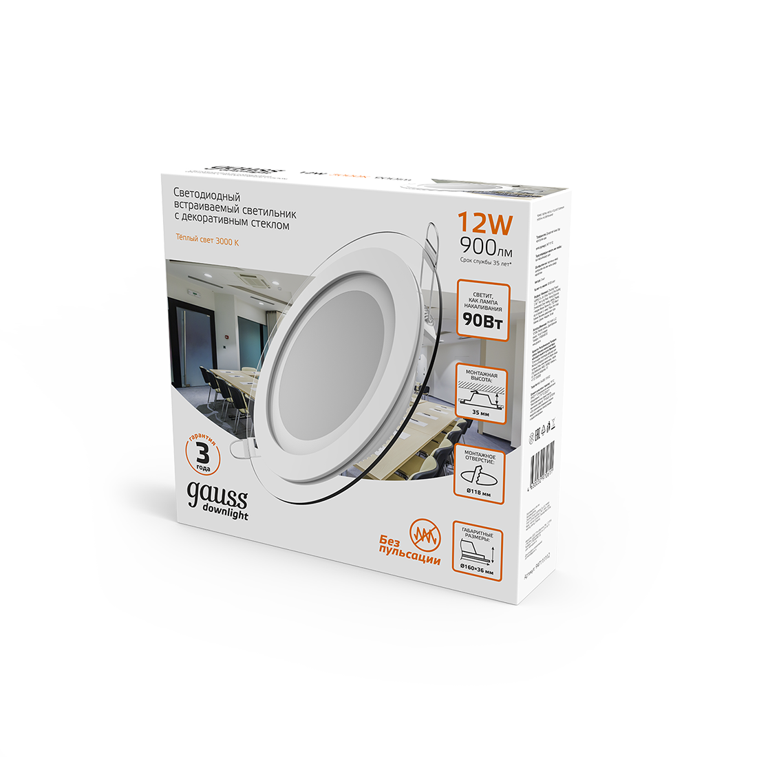 Светильник светодиодный Gauss 12В 3000K 900Лм встраиваемый с декоративным стеклом IP20 круг белый 947111112 интересное: