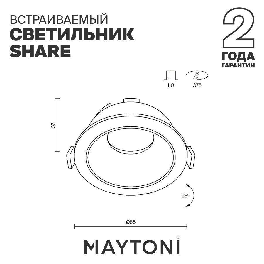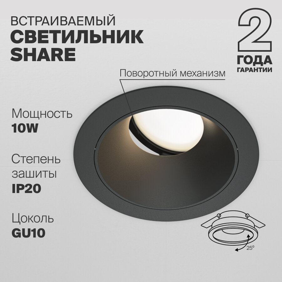 Встраиваемый светильник черный 10Вт Maytoni Technical Share GU10 DL051-U-1B интересное: