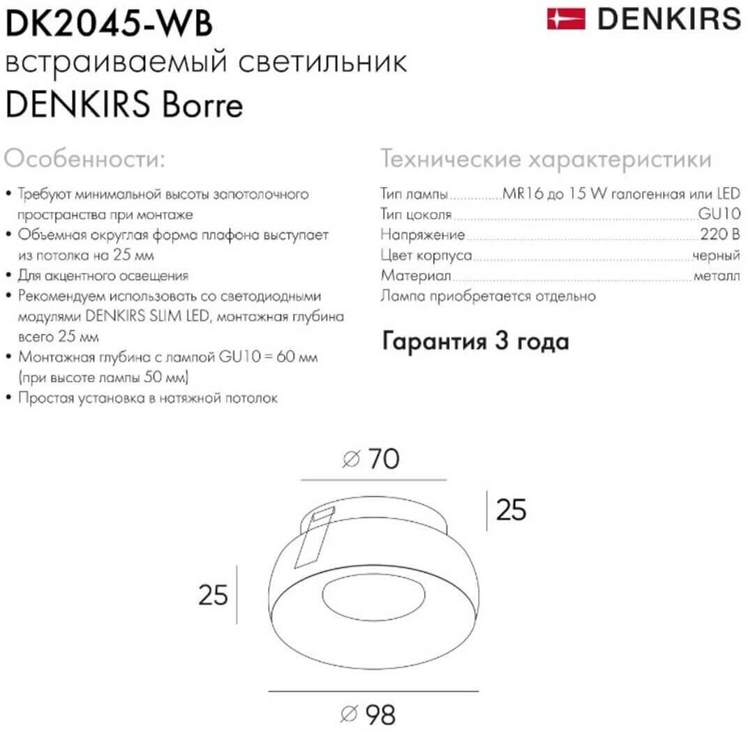 Denkirs Встраиваемый точечный светильник Denkirs DK2045 DK2045-WB интересное: