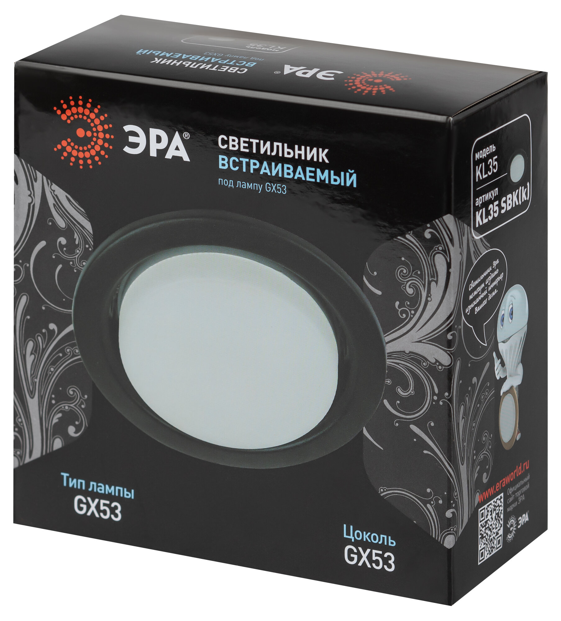 Светильник точечный встраиваемый ЭРА KL35 под лампу GX53 черный матовый цвет, круглый интересное: