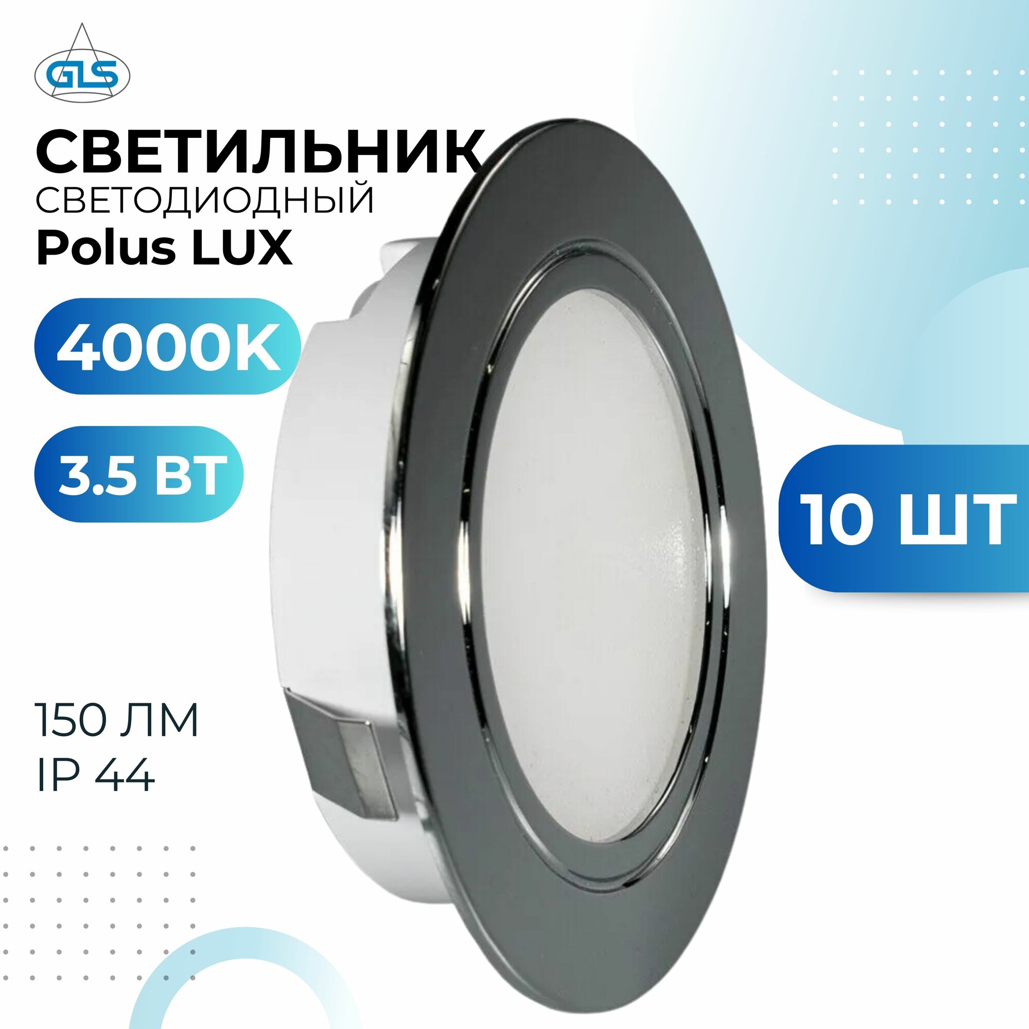 Ниже Вы можете прочитать отзывы на Встраиваемый светильник GLS LED Polus LUX, 3.5 Вт, 220V IP44, 4000К, светодиодный мебельный врезной, цвет хром, 10 шт, ознакомится с подробными характеристиками, посмотреть интересные обзоры и фотографии на Встраиваемый светильник GLS LED Polus LUX, 3.5 Вт, 220V IP44, 4000К, светодиодный мебельный врезной, цвет хром, 10 шт.
