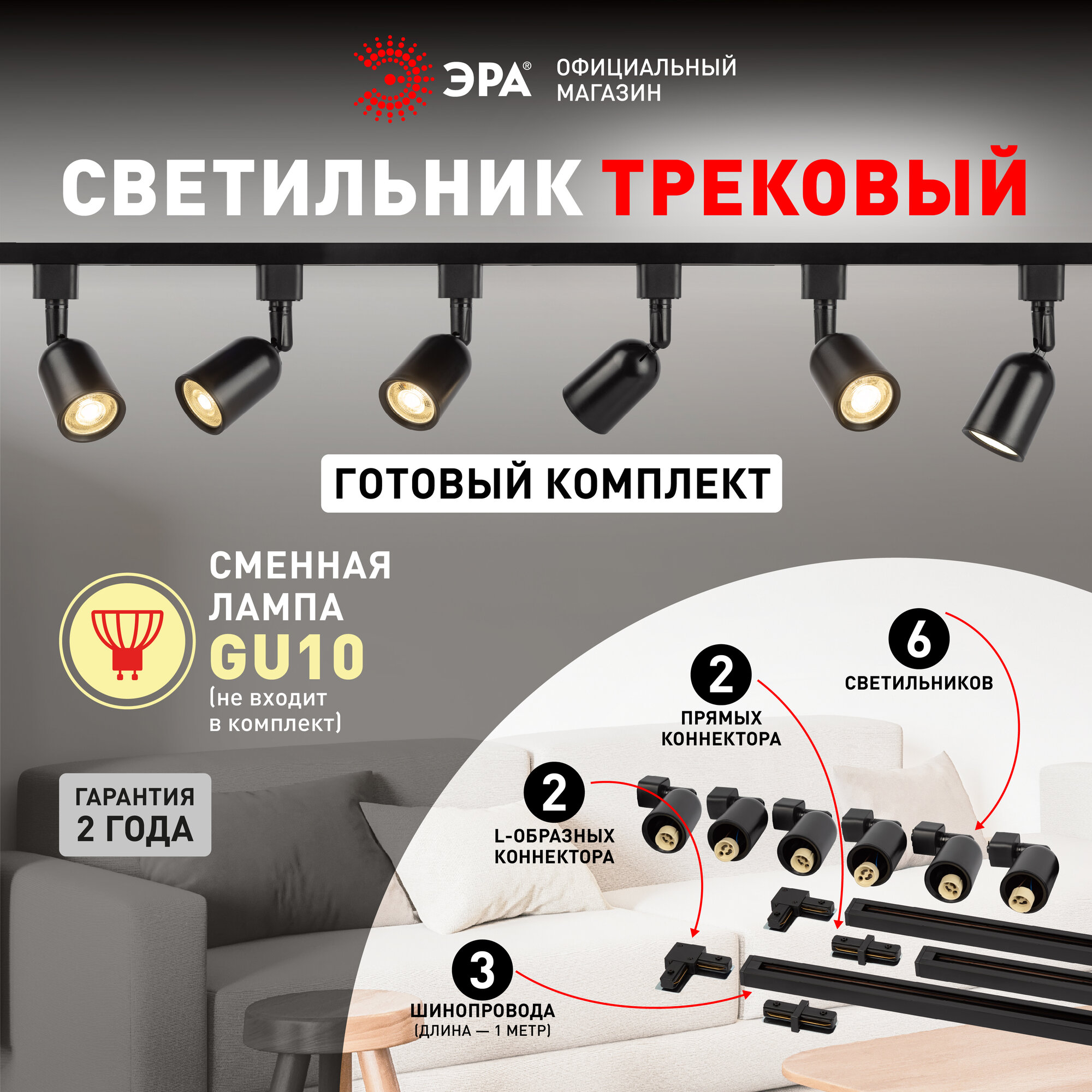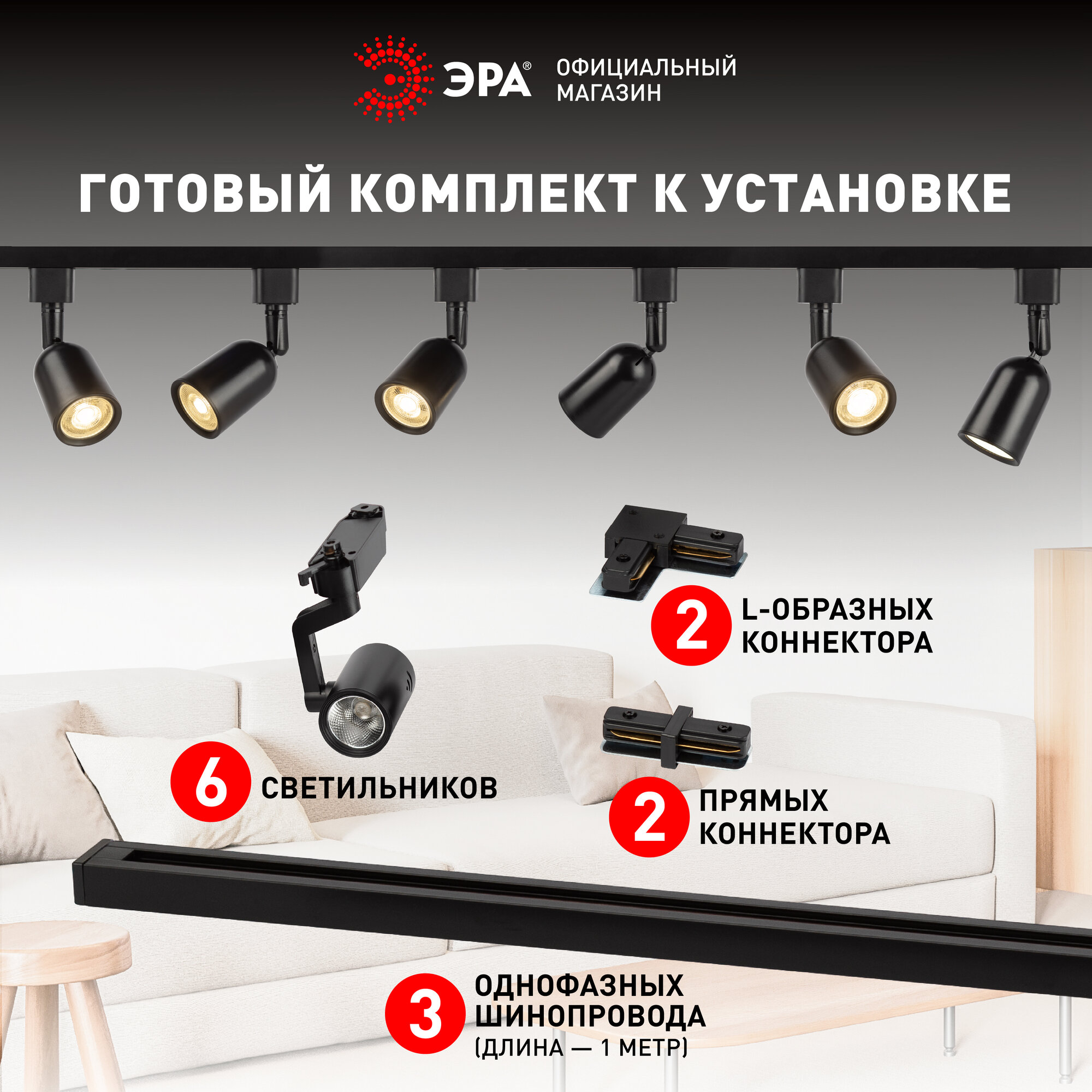 Купить Набор трековых светильников 6шт однофазный потолочный под лампу GU10 с шинопроводом черный ЭРА