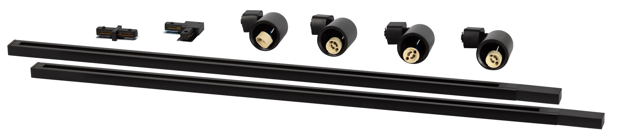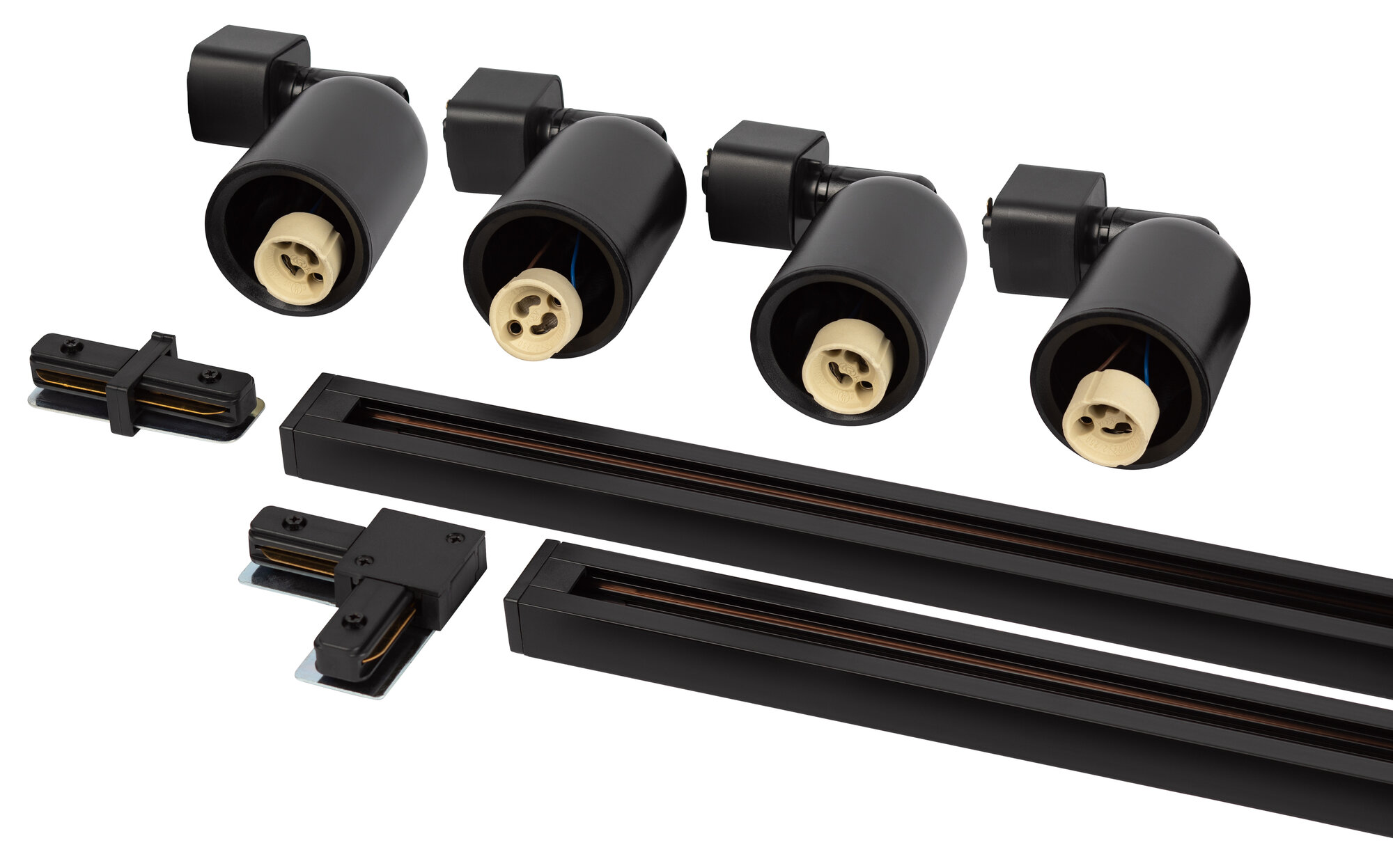Купить Набор трековых светильников 4шт однофазный потолочный под лампу GU10 с шинопроводом черный ЭРА