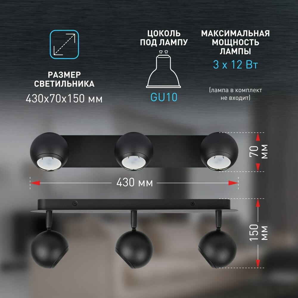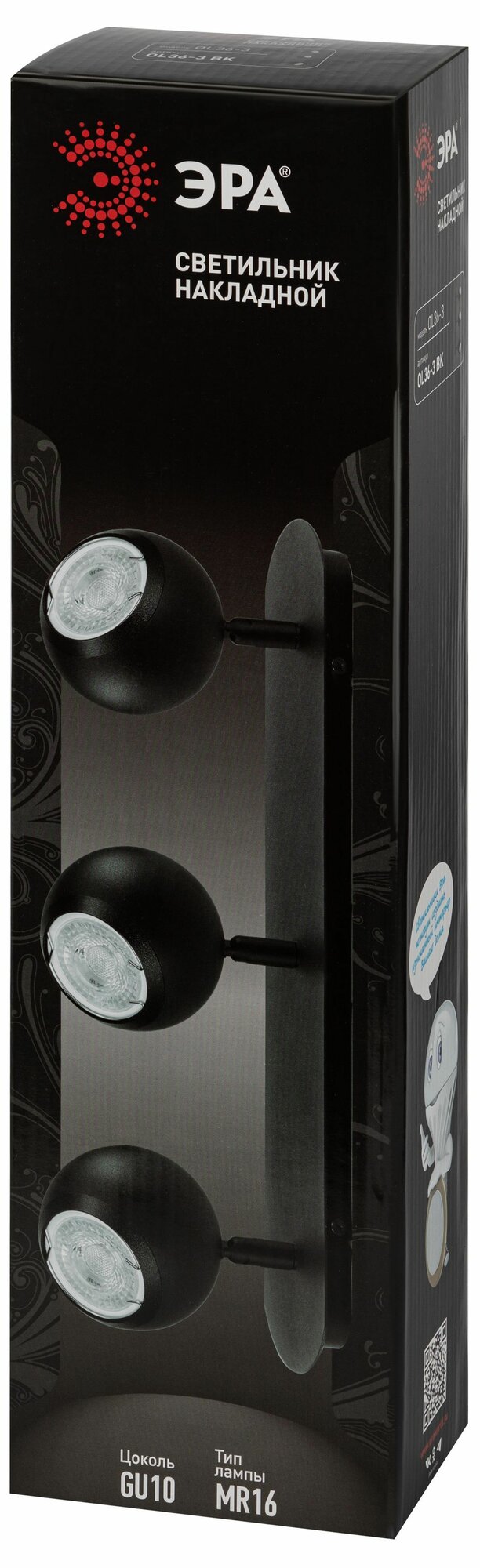 Светильник настенно-потолочный ЭРА OL36-3 BK под лампы 3хGU10 12Вт черный поворотный спот интересное: