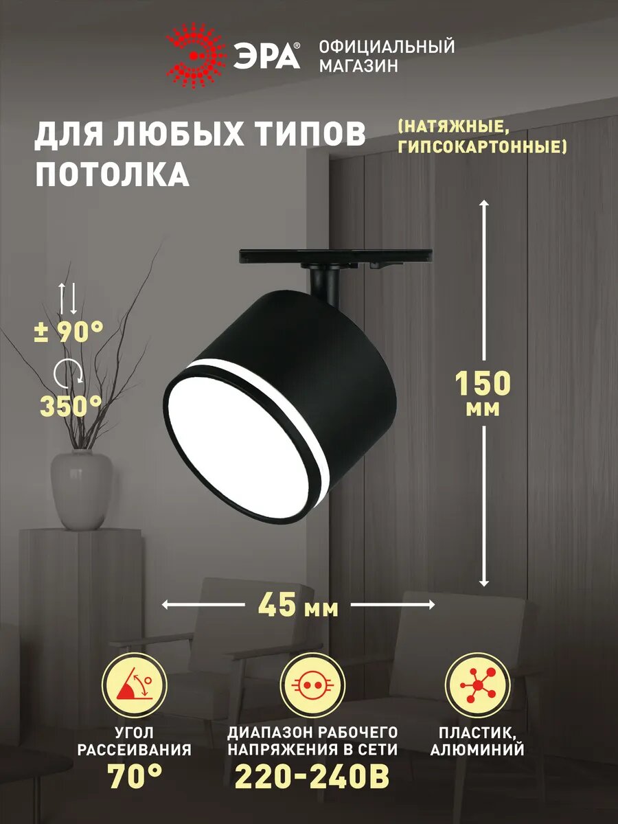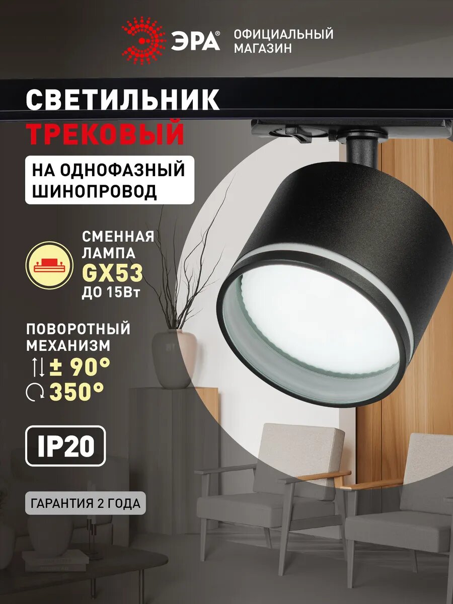 Однофазный трековый светильник под лампу GX53 c акриловым кольцом TR75 - GX53 BK Черный интересное: