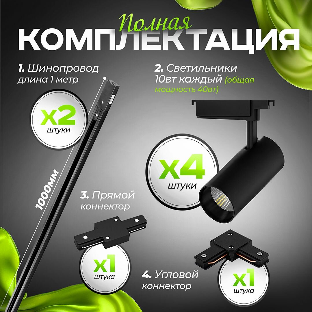 Трековый светильник потолочный подвесной черный комплект 4шт 40Вт 4000К 2800лм интересное: