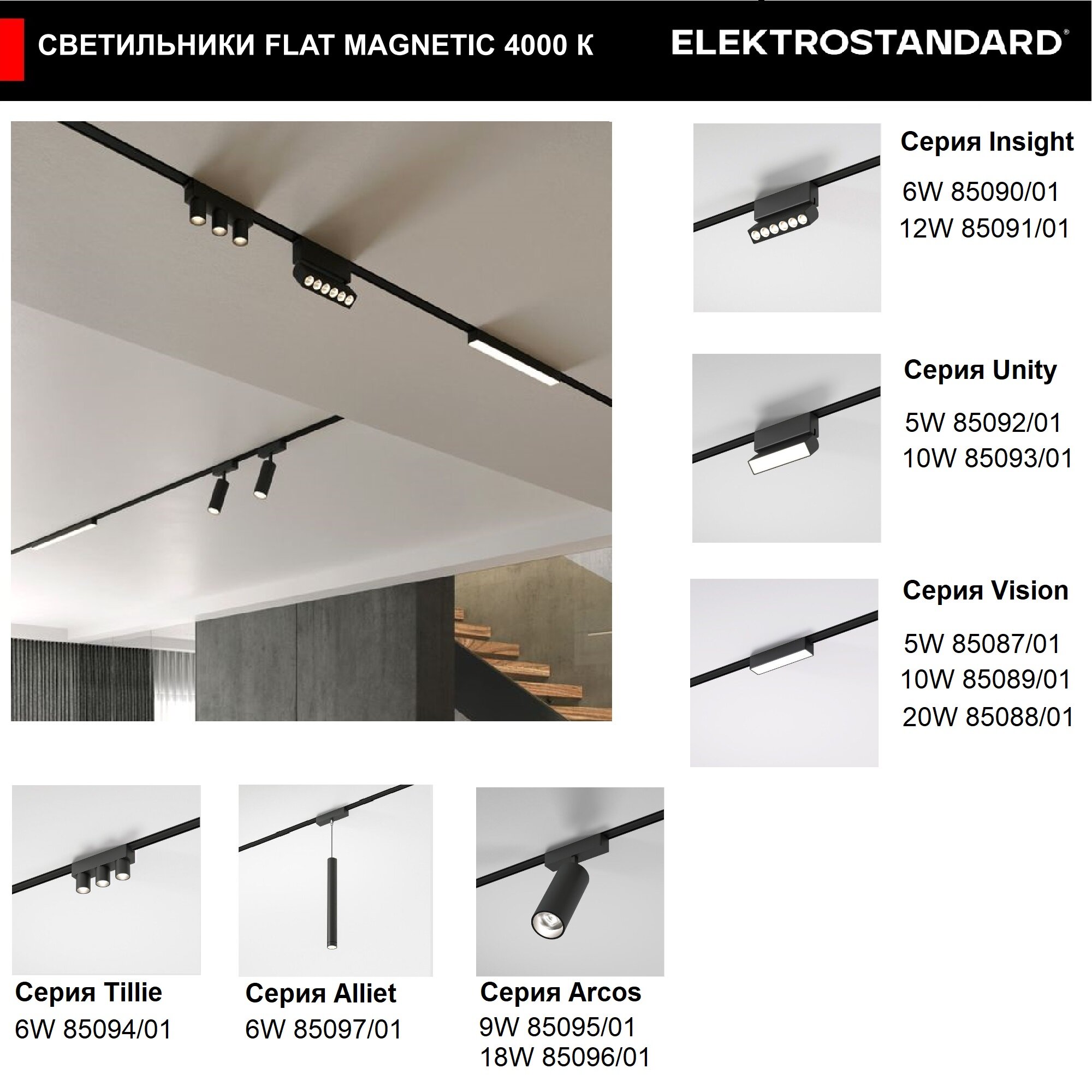 Трековый светодиодный светильник Elektrostandard Flat Magnetic Vision 85088/01, 10 Вт, 4000 K, цвет чёрный, IP20