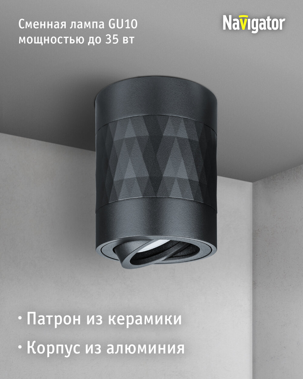 Декоративный светильник Navigator 93 405 накладной для ламп с цоколем GU10, черный интересное: