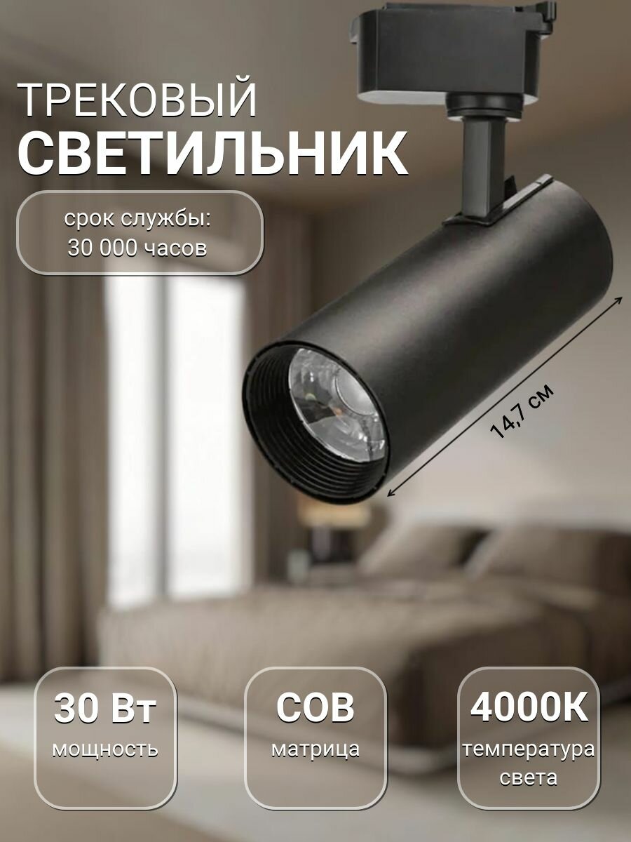 Спот потолочный для трековых светильников 6см 30Вт Черный интересное: