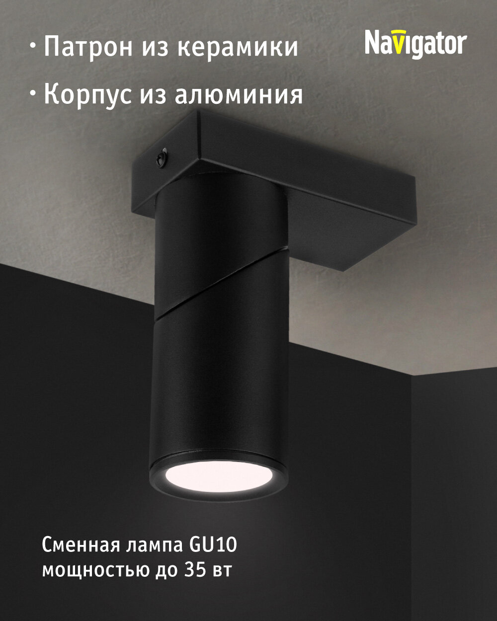 Декоративный светильник Navigator 93 394 накладной для ламп с цоколем GU10, черный интересное: