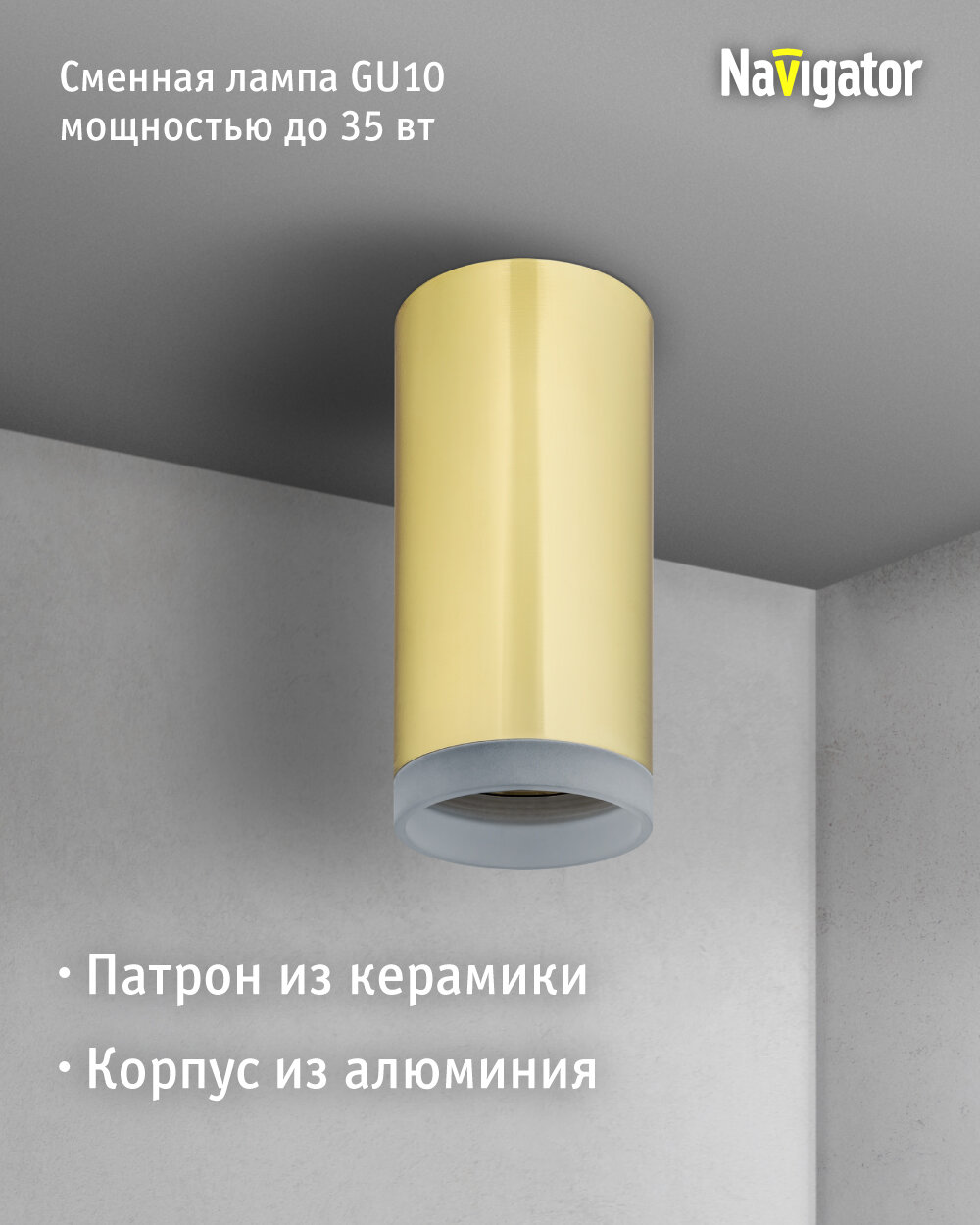 Купить Декоративный светильник Navigator 93 340 накладной для ламп с цоколем GU10, золото