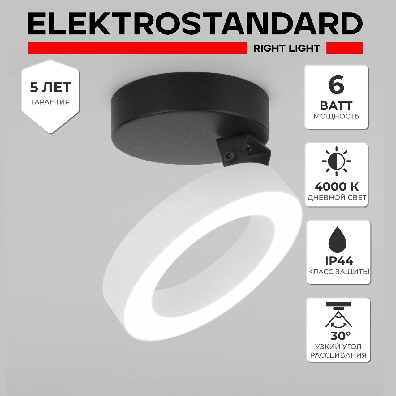 Спот / Накладной потолочный светодиодный светильник Elektrostandard Pika 25029/LED, поворотный, 6 Вт/4200К, черный