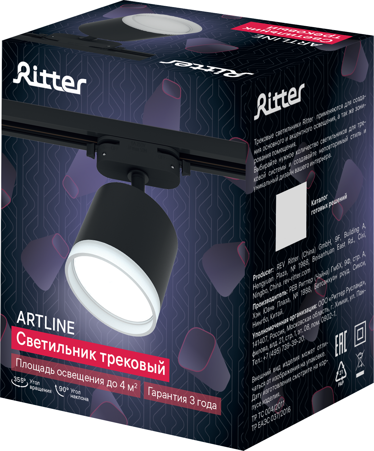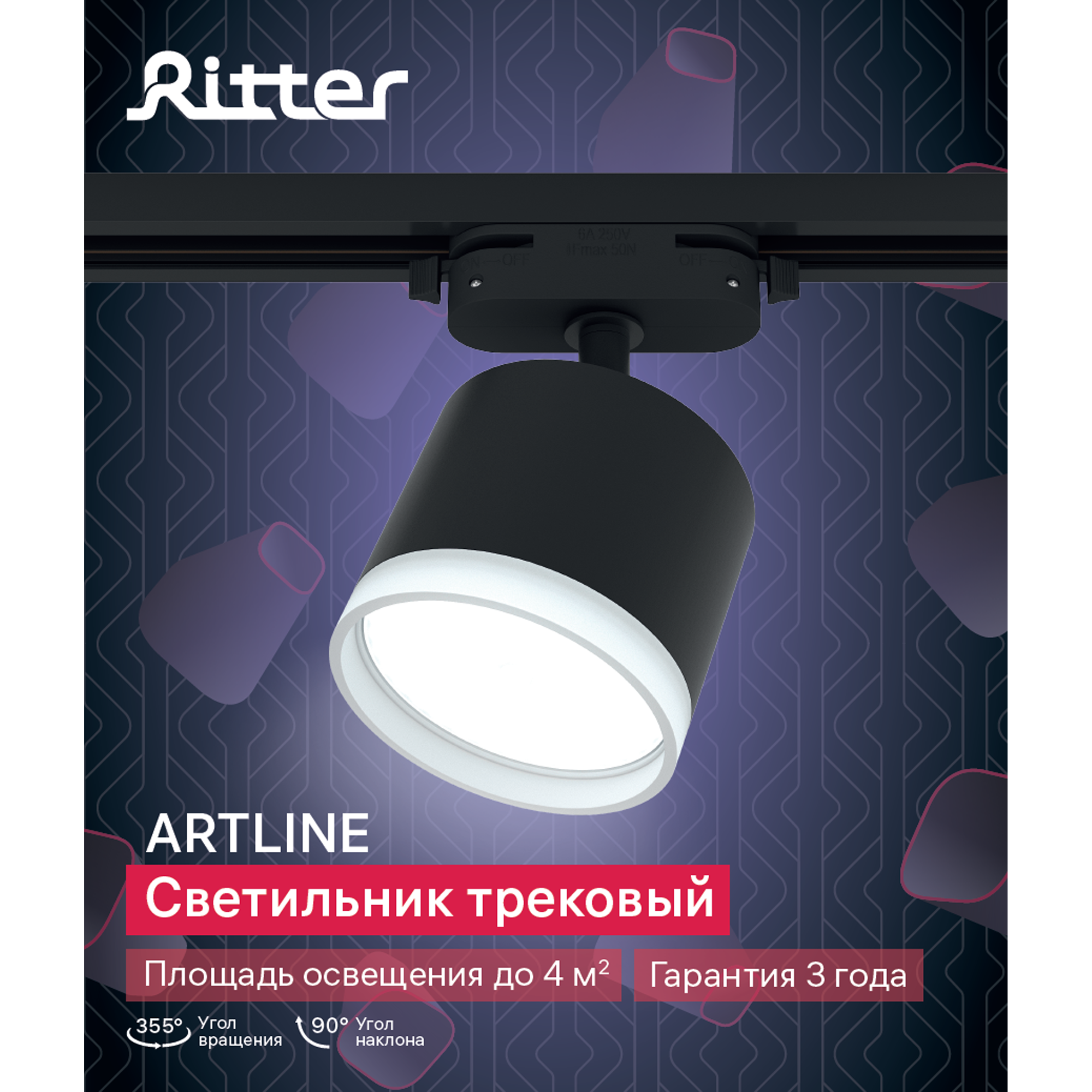 Трековый светильник спот поворотный Ritter Artline 85x70мм под лампу GX53 до 4м металл/пластик цвет чёрный интересное: