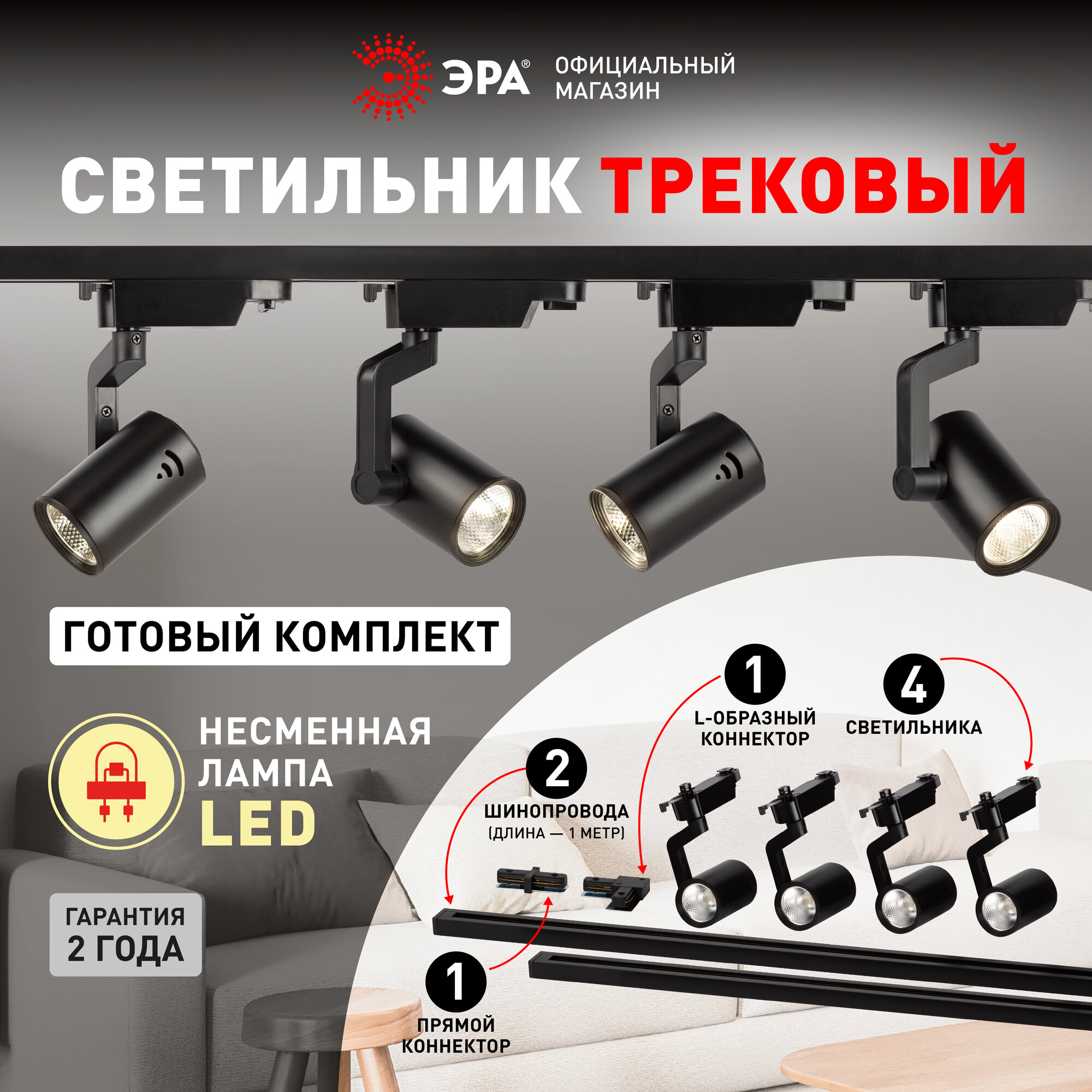 Набор трековых светильников LED 4шт черный однофазный с шинопроводом 40 Вт ЭРА интересное: