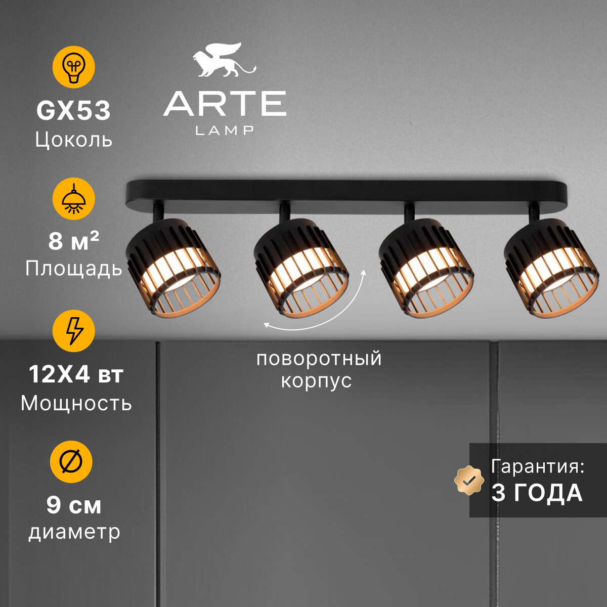 Спот накладной Arte Lamp ATRIA A8031PL-4BK GX53 12 Вт черный интересное:
