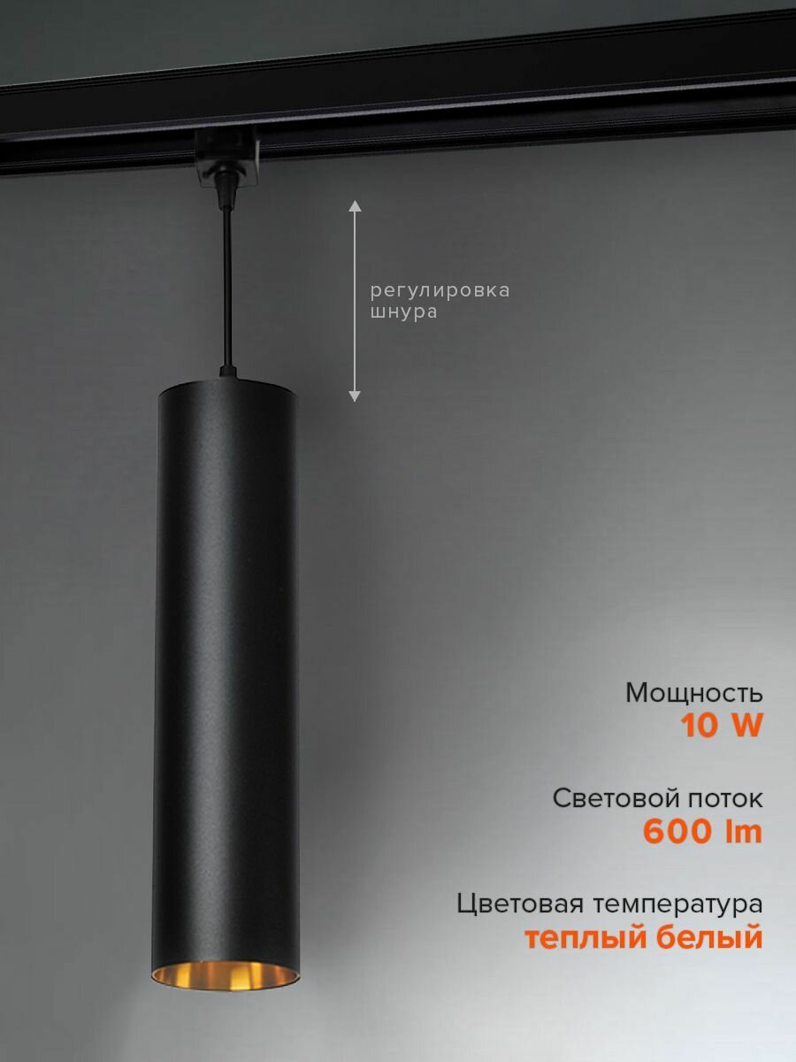 Трековый светильник светодиодный Jazzway PTR 2310 10w 3000K BL на подвесе 1м интересное: