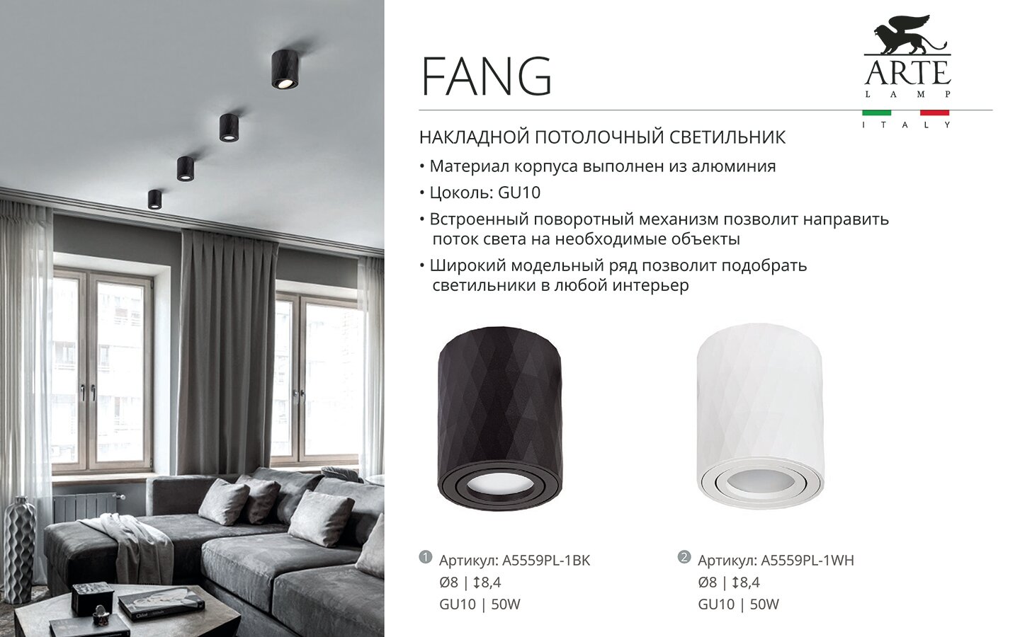 СохранитьТочечный накладной светильник Arte Lamp FANG A5559PL-1WH GU10 белый интересное: