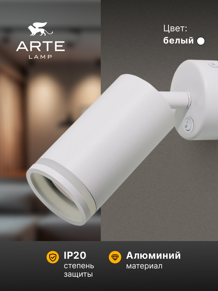 Купить Спот настенный Arte Lamp IMAI A2365AP-1WH, GU10, 15Вт, белый