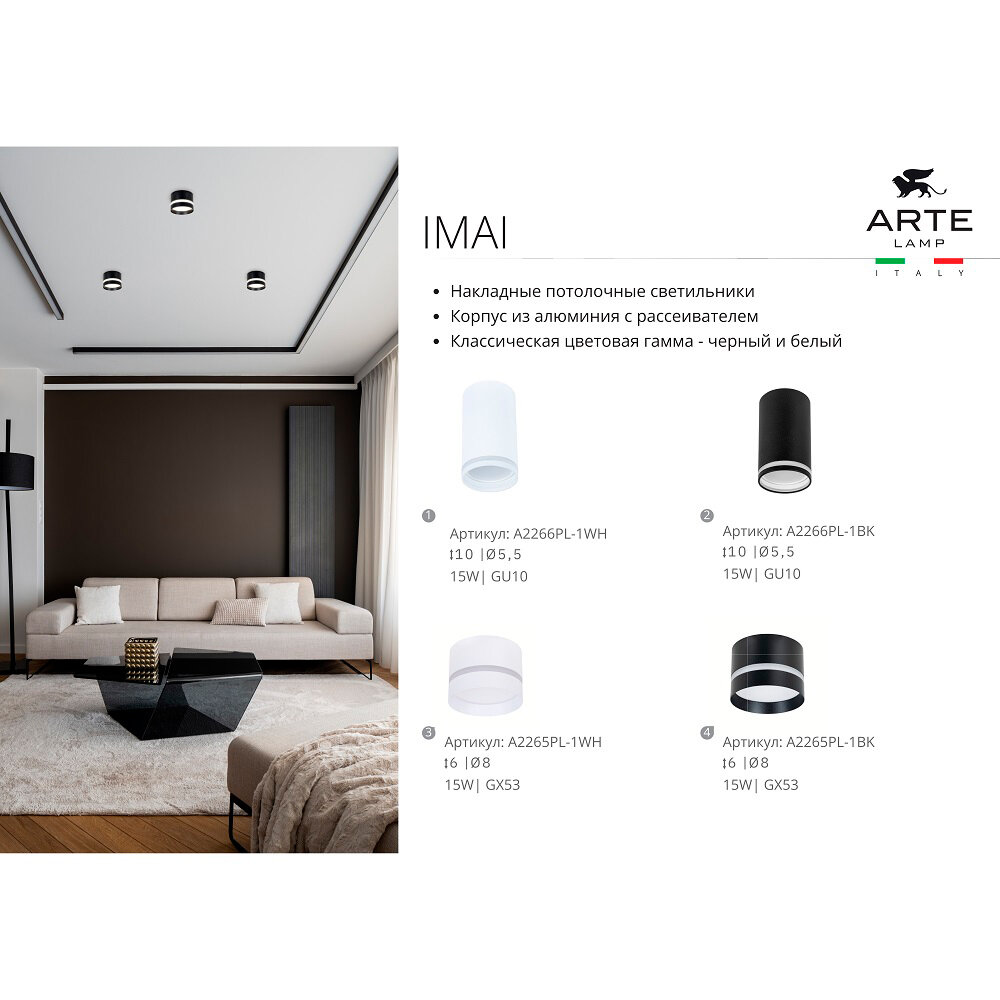 Купить Точечный накладной светильник Arte Lamp IMAI A2266PL-1BK GU10 15Вт чёрный