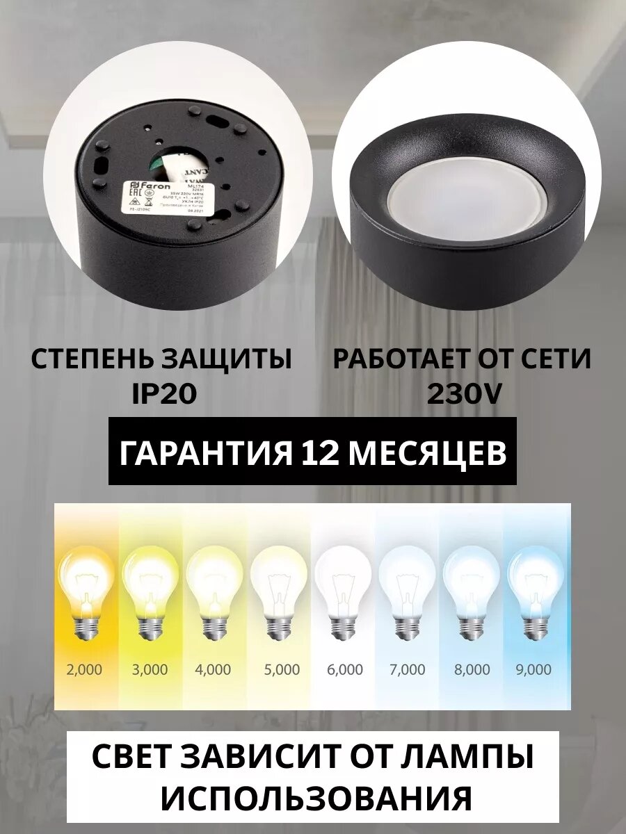 Светильник потолочный FERON HL174, спот накладной под лампу GU10, черный интересное: