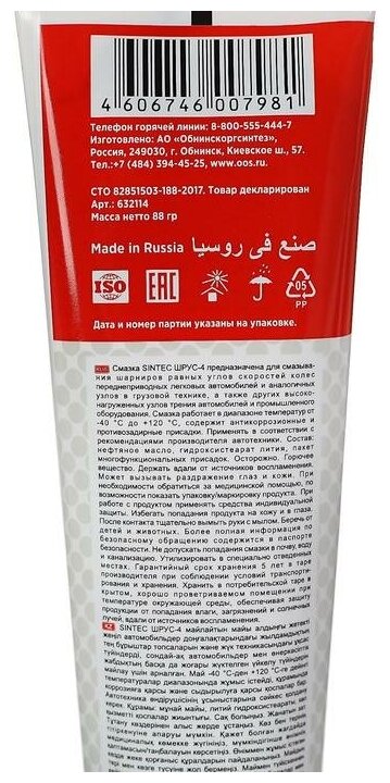 Смазка в тубе ШРУС-4 100 гр 632114 Sintec 00-01311489