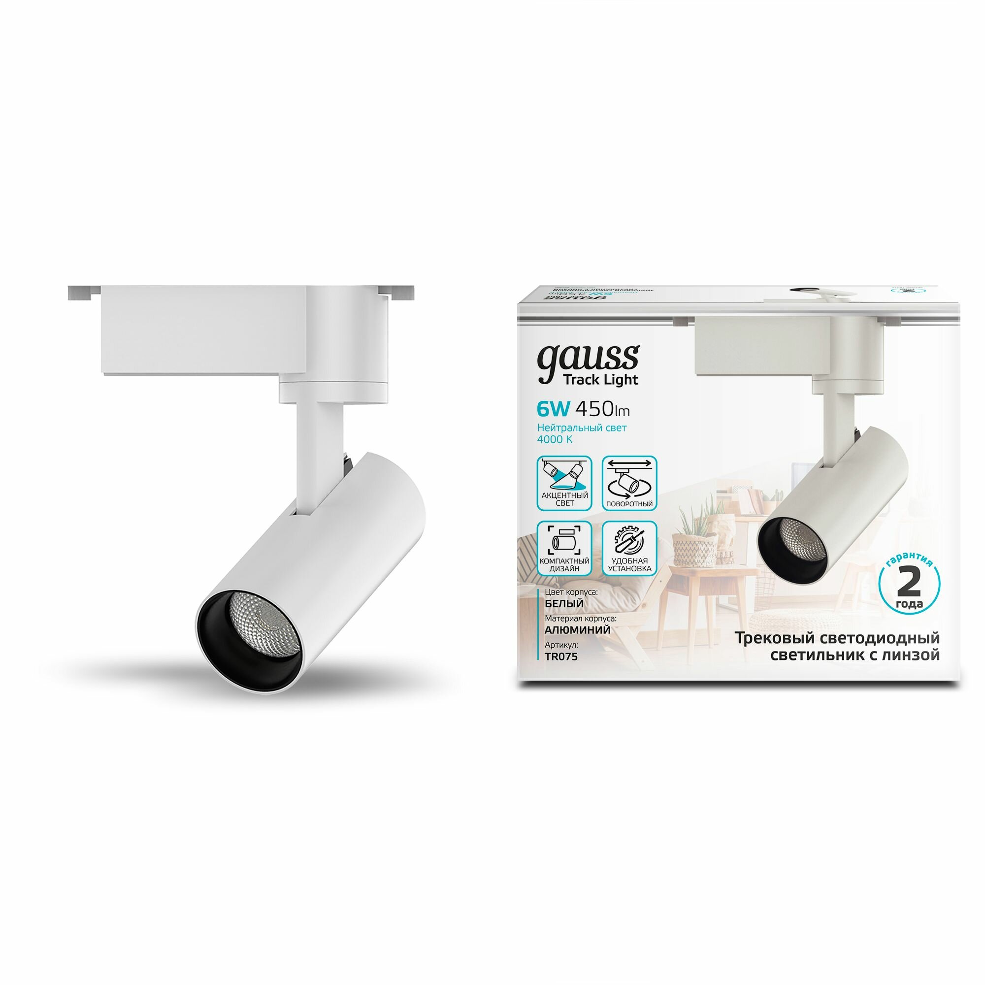 Светильник трековый 6W 4000K 220V цилиндр белый линза 36 град. Gauss интересное: