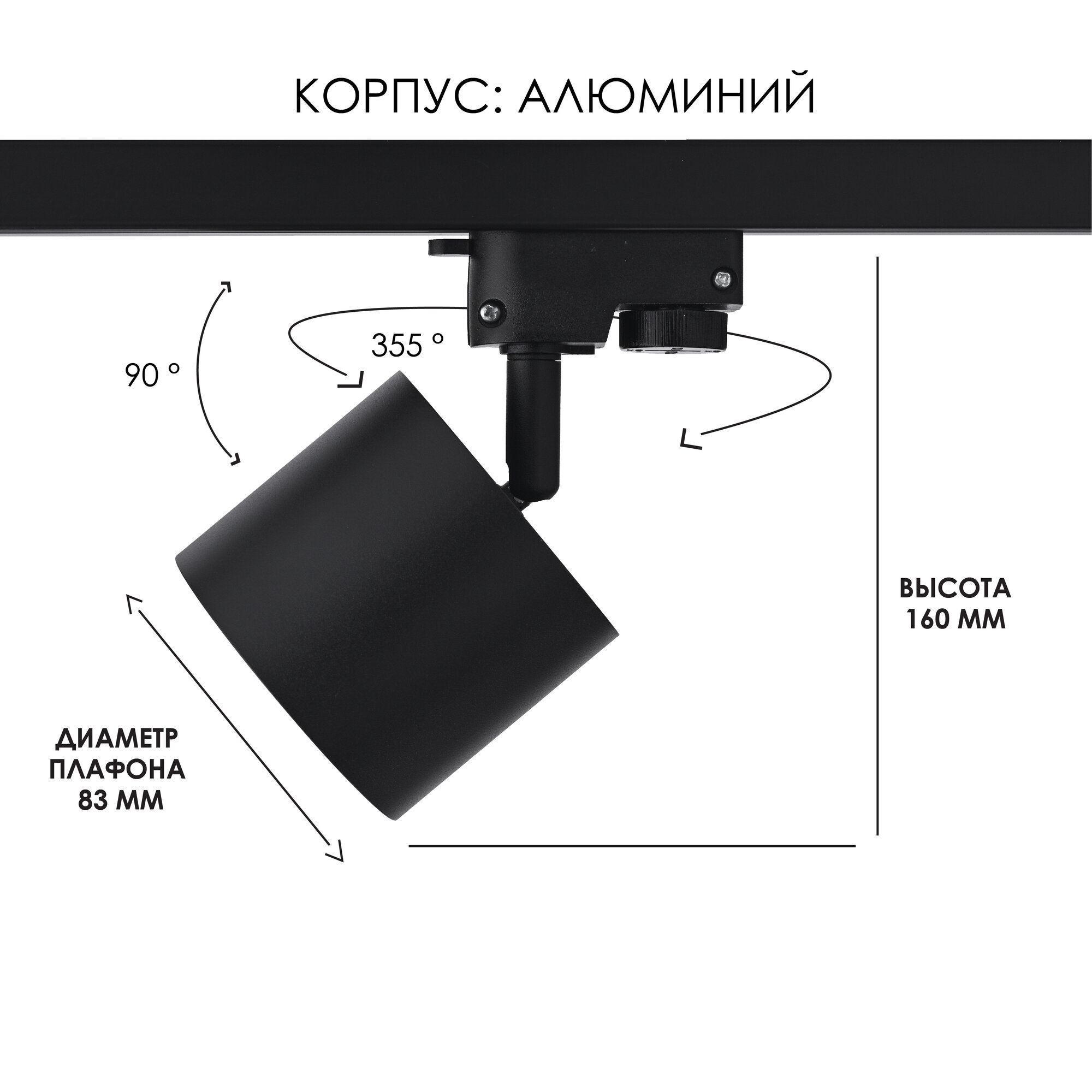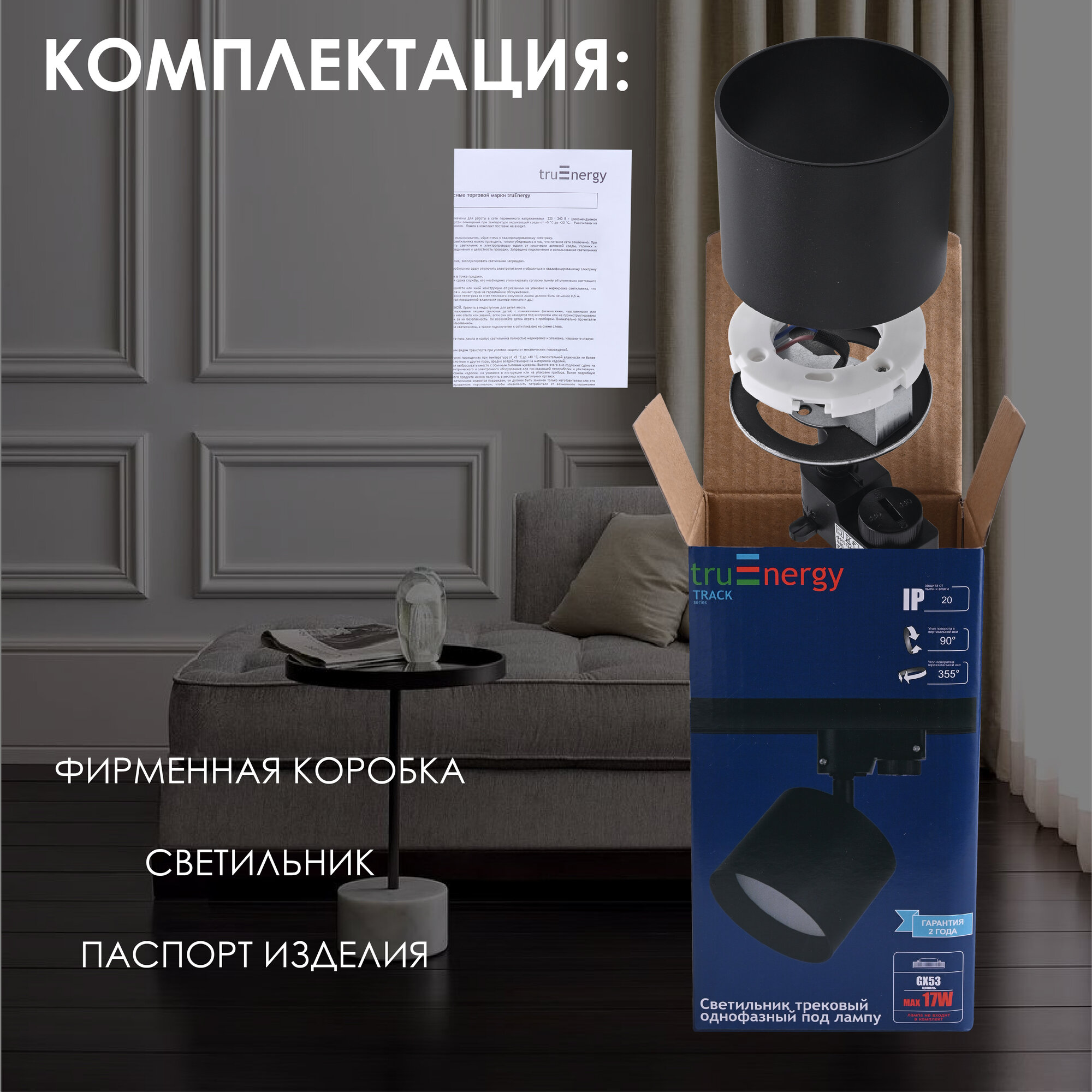 Трековый светильник TruEnergy 8,3х15 см, потолочный, 1 плафон, 1 лампочка, цоколь GX53