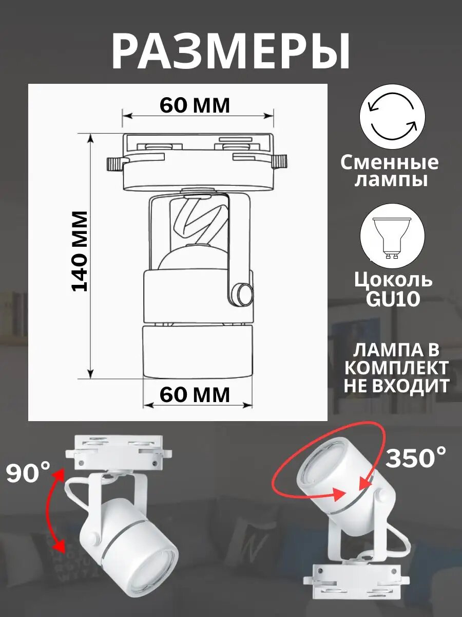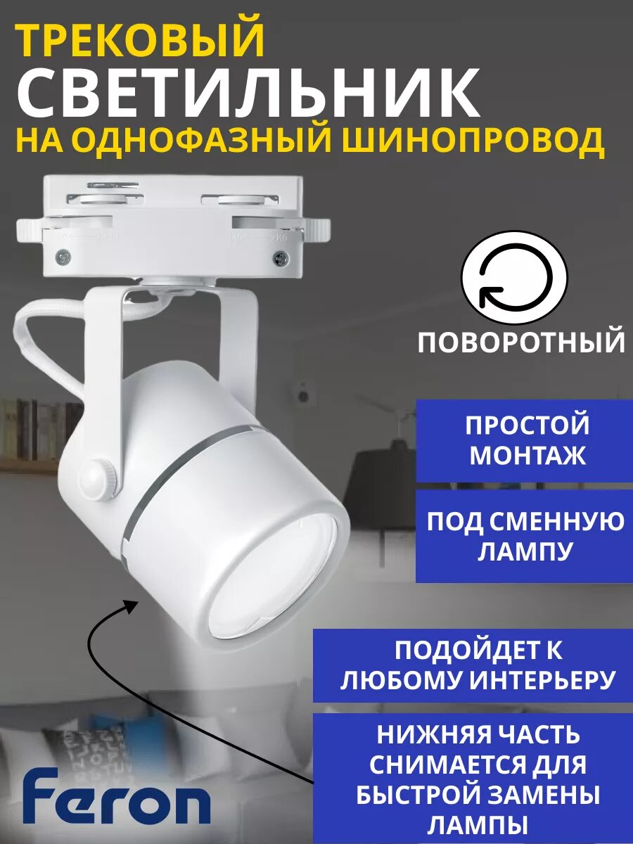 Трековый светильник FERON AL191, однофазный на шинопровод, под лампу GU10, поворотный, белый интересное: