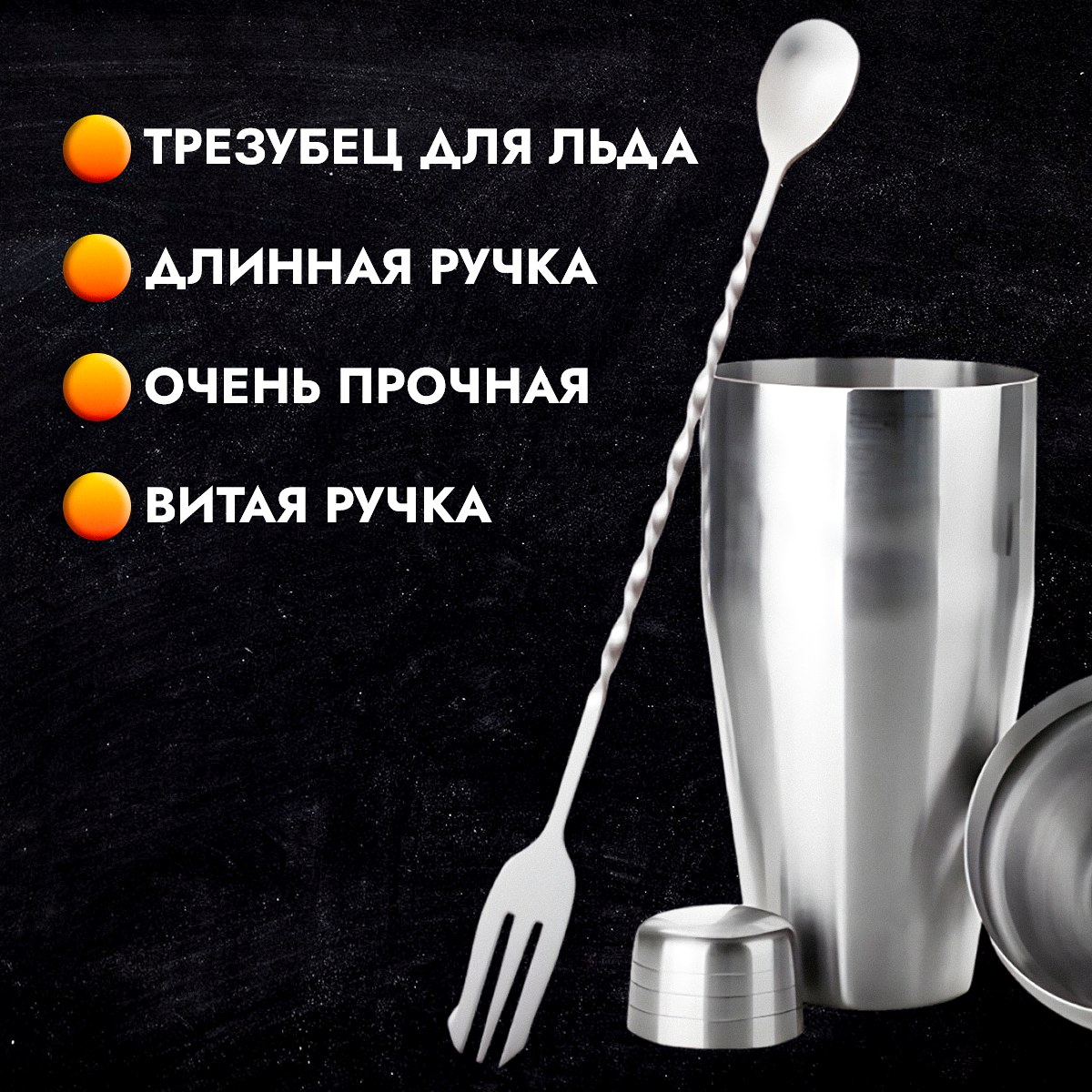 Набор из двух длинных барных ложек с маддером и вилкой трезубец интересное: