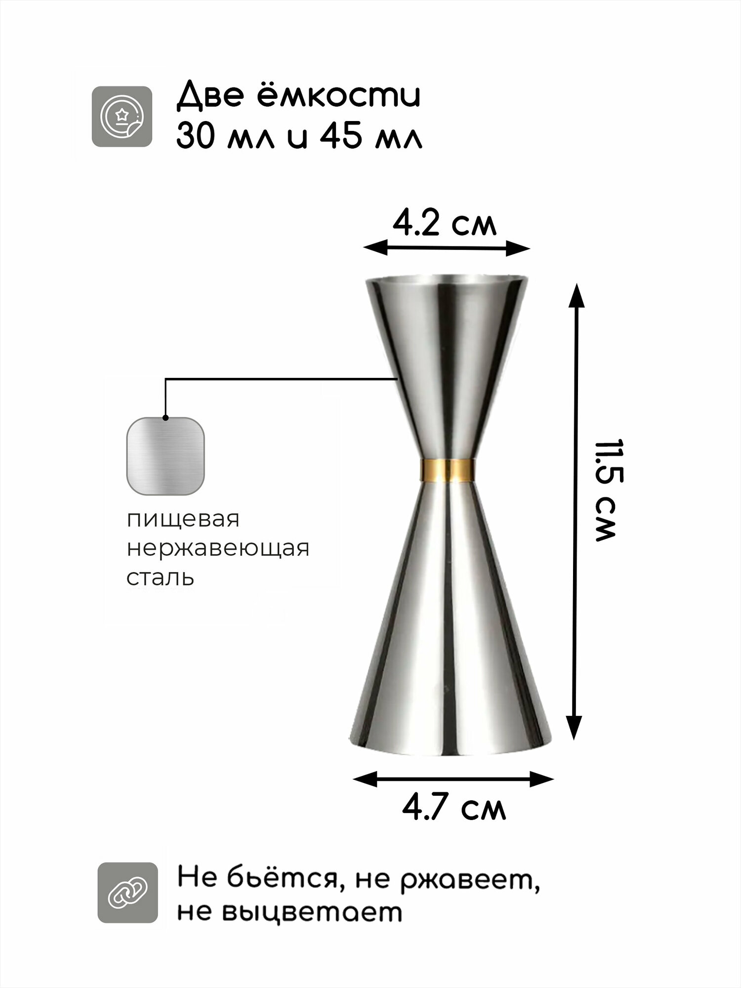 Джиггер барный для коктейлей 30/45 мл интересное: