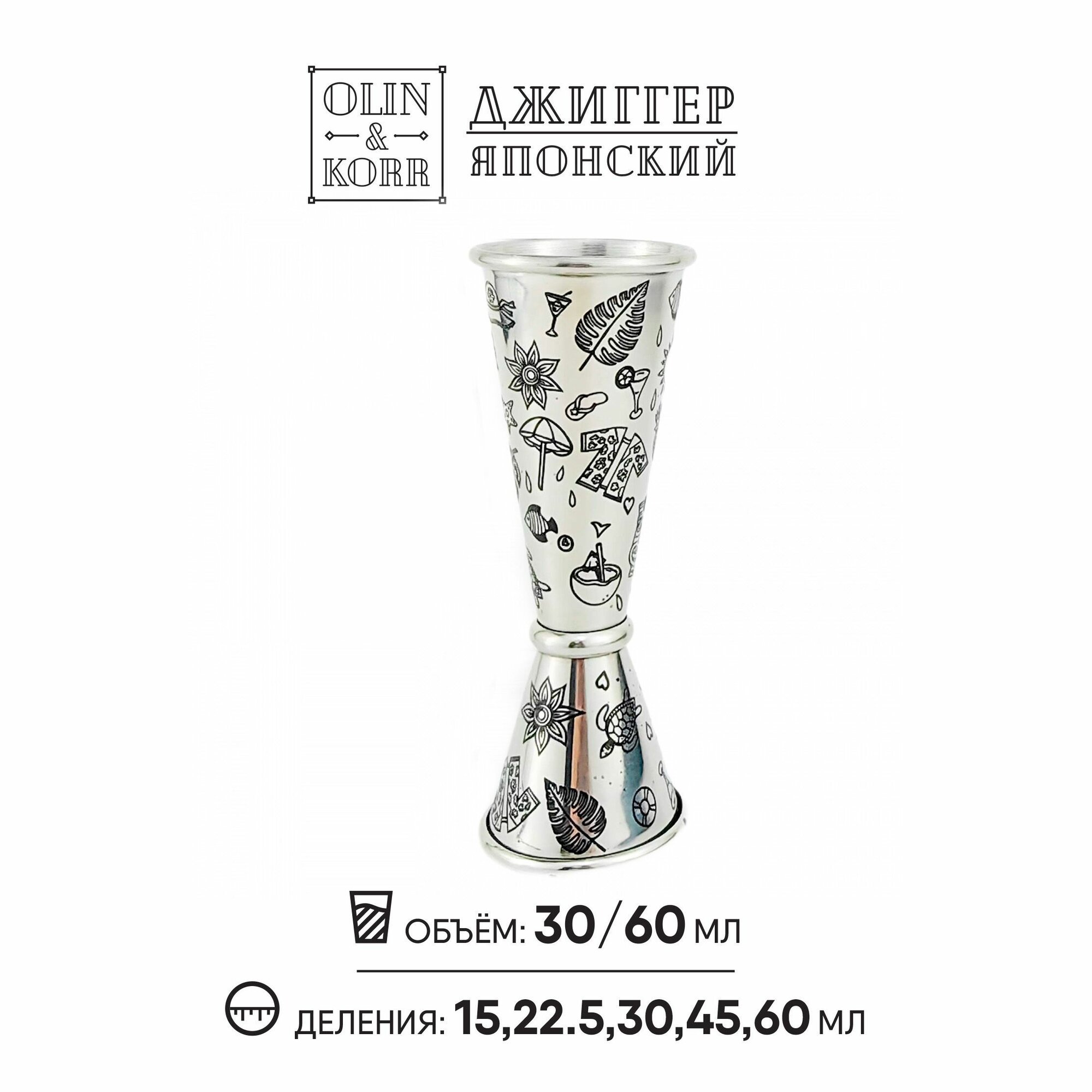 Джиггер Olin&Korr 60/30мл с насечками 45/22,5 и 15 мл