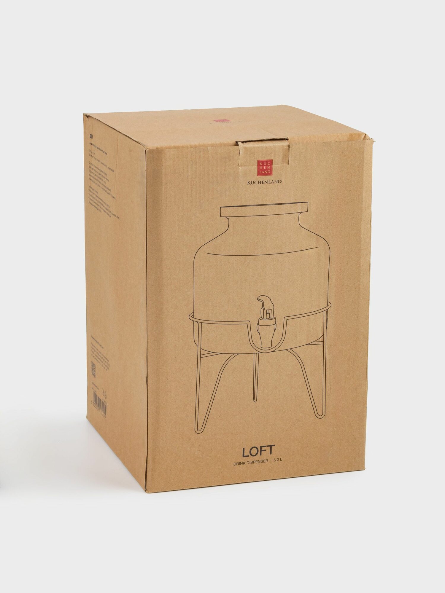 Купить Диспенсер для напитков, 5,2 л, на подставке, стекло/металл, черный, Loft