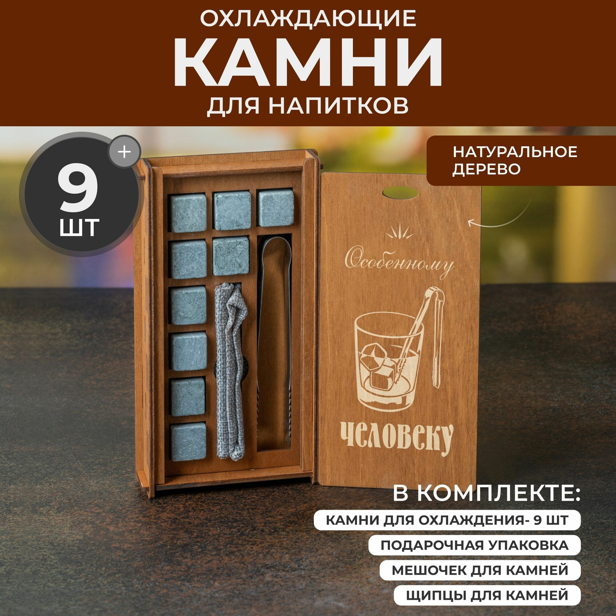 Камни для виски 9 штук, подарочный набор для мужчин "Особенному человеку" в деревянной коробке интересное: