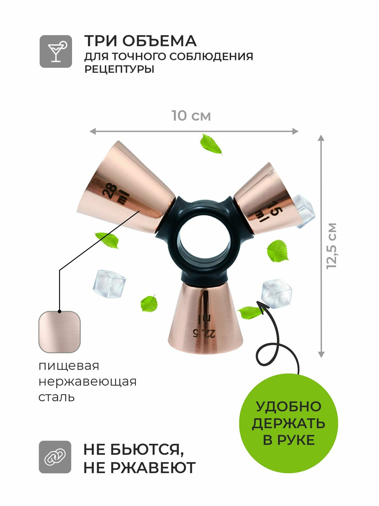 Джиггер для напитков из нержавеющей стали 15, 22,5 и 28мл интересное: