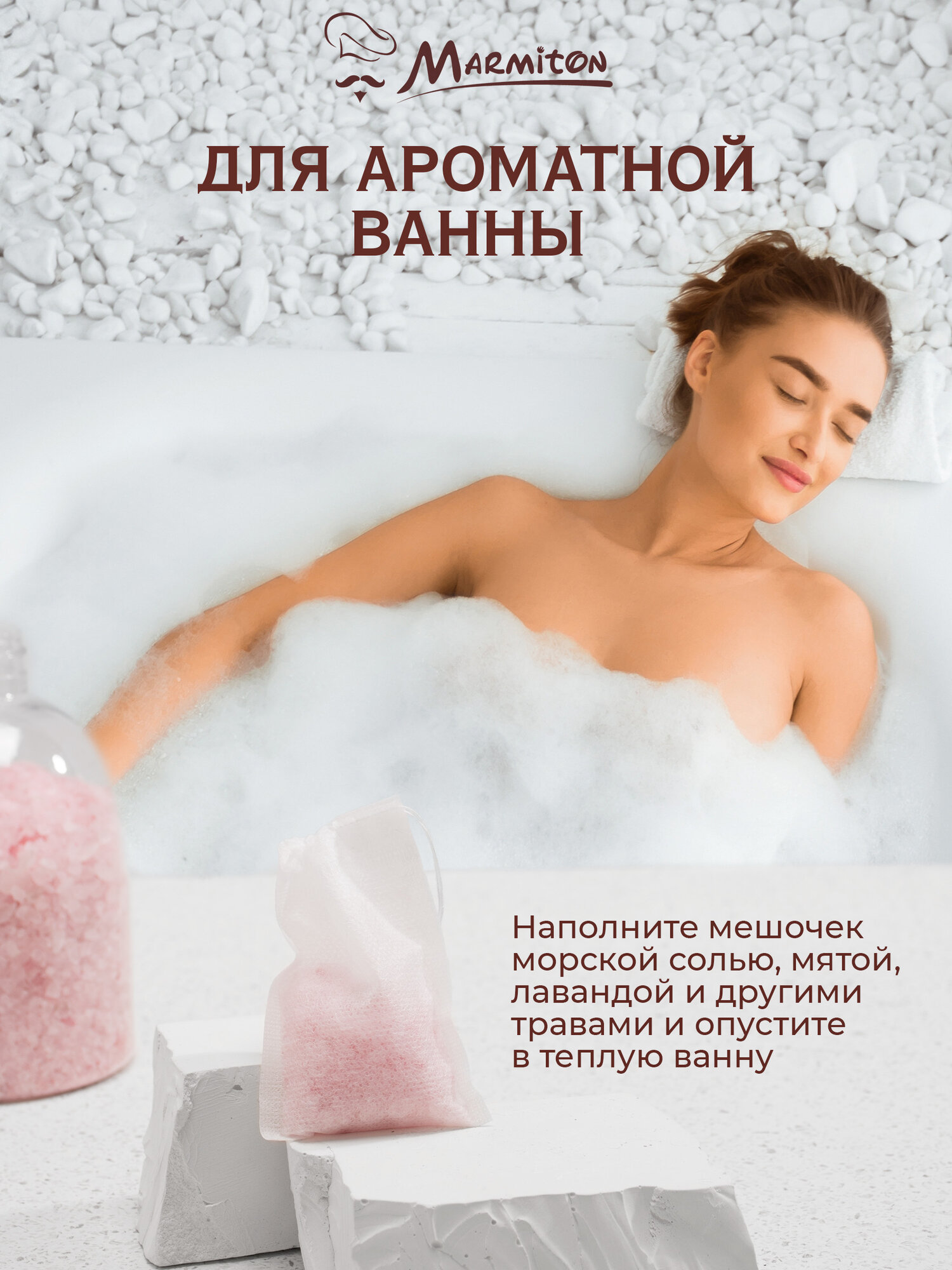 Пакетики для заваривания чая и трав 6*8 см, на завязках (50 шт) MARMITON интересное: