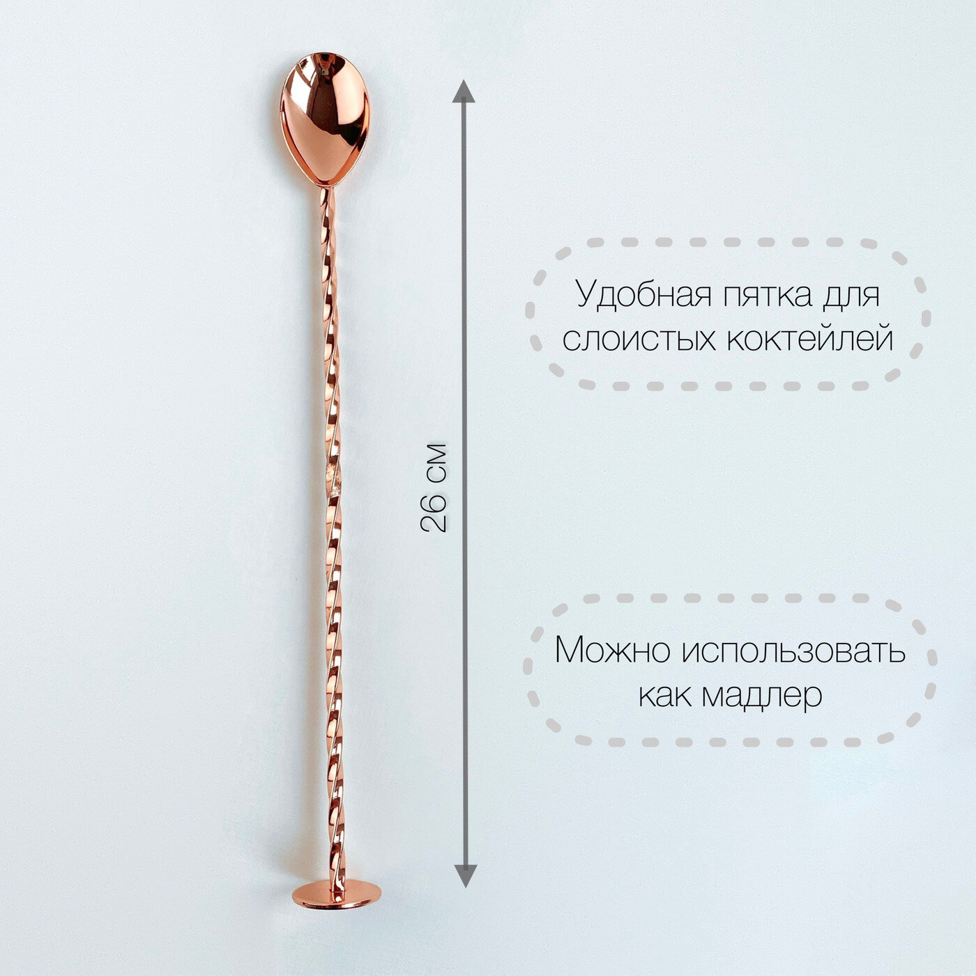 Барная ложка с пяткой для шотов 26см (медная) Olin & Korr интересное: