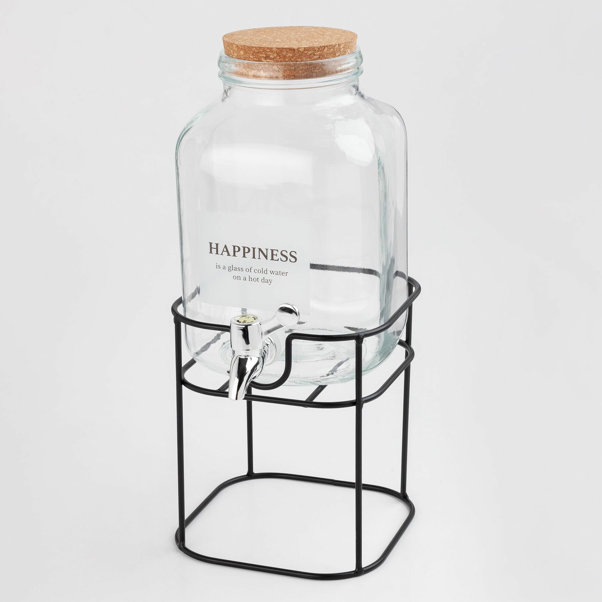 Диспенсер для напитков, 3 л, на подставке, стекло/пробка/металл, Clear font интересное: