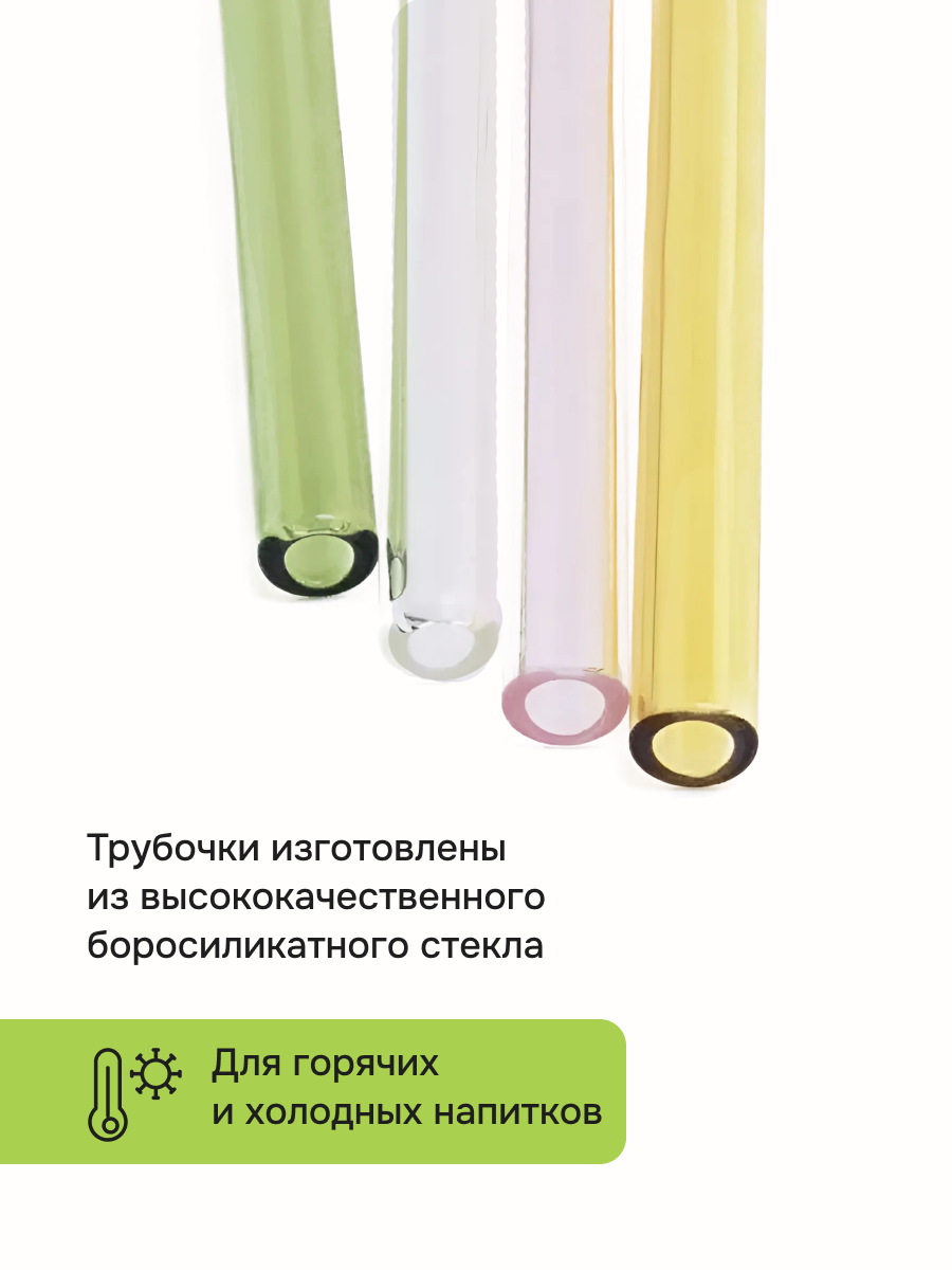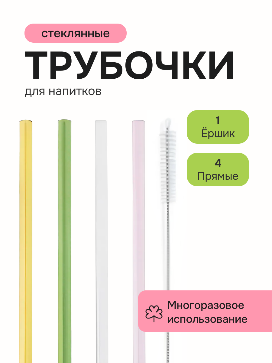 Многоразовые цветные стеклянные трубочки для напитков 4 шт, с ершиком