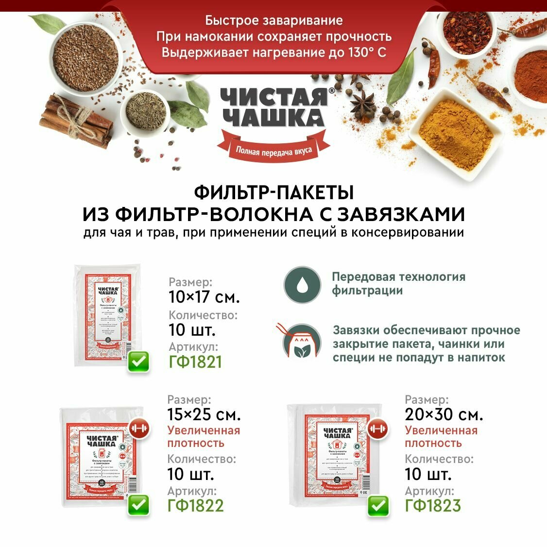 Ниже Вы можете прочитать отзывы на Фильтр-пакеты для заваривания, хранения и сушки продуктов с завязками (15х25 см, 10 шт), ознакомится с подробными характеристиками, посмотреть интересные обзоры и фотографии на Фильтр-пакеты для заваривания, хранения и сушки продуктов с завязками (15х25 см, 10 шт).