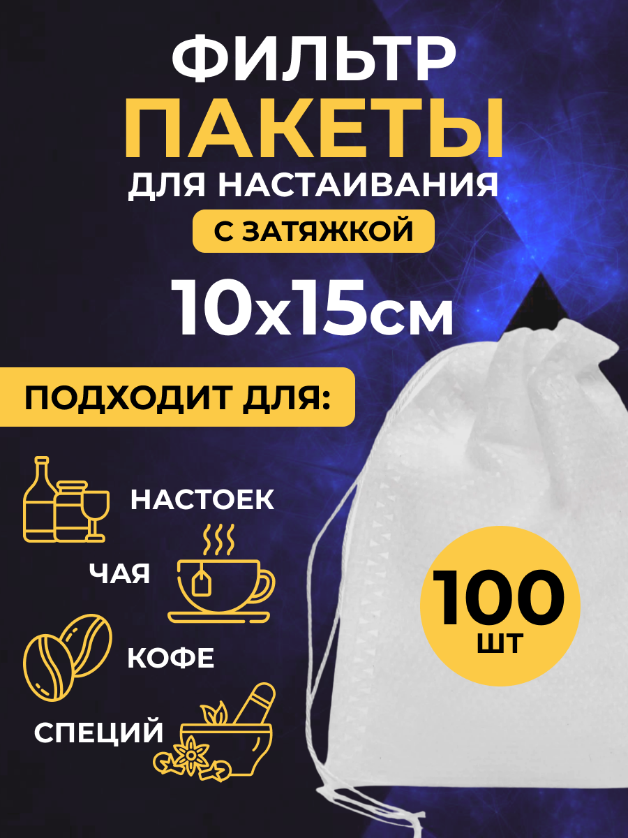 Фильтр-пакеты 10х15 см. (100 шт.) одноразовые, для настаивания трав/специй/чая интересное: