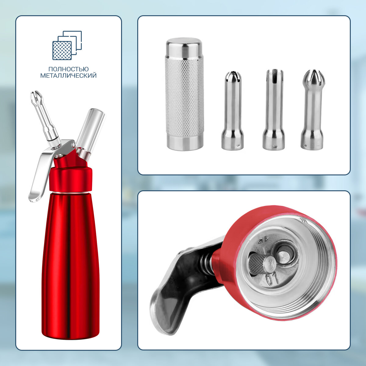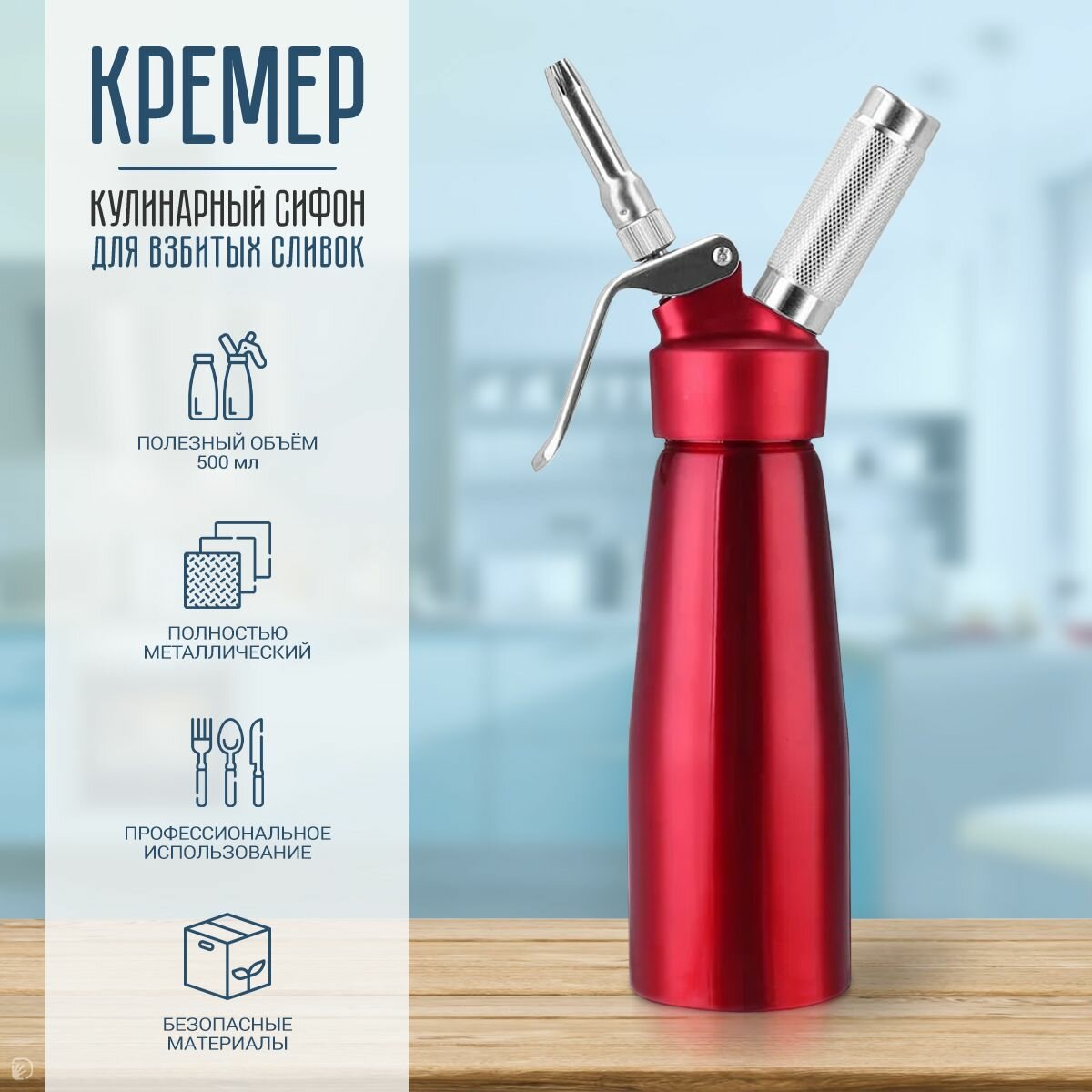 Кулинарный кремер-сифон для взбивания сливок, красный, 0.5 л. интересное: