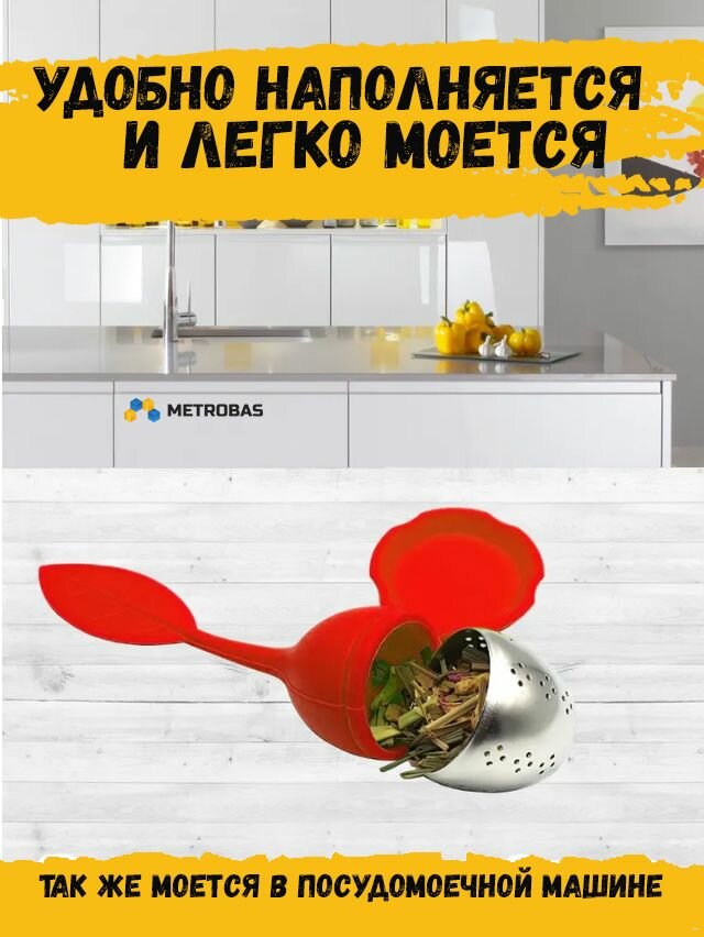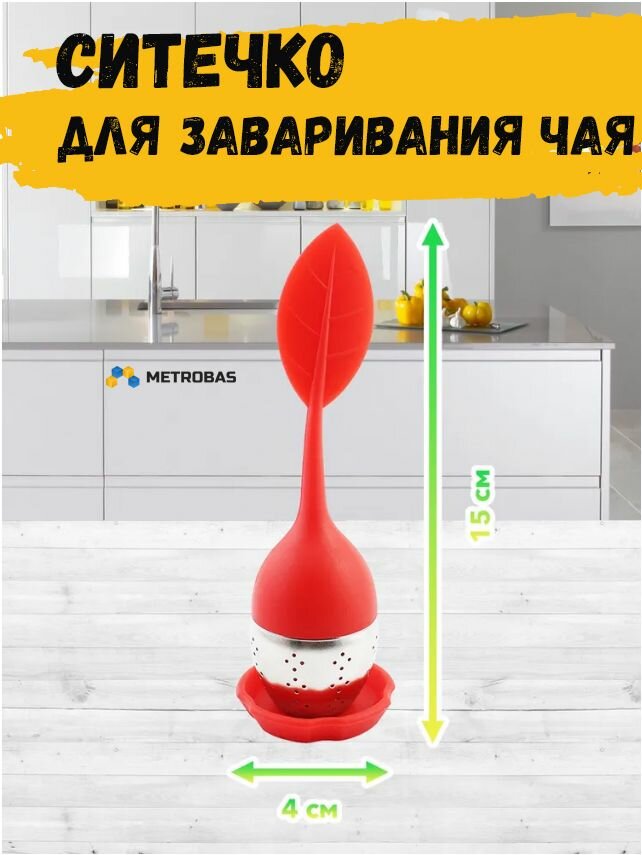 Ситечко METROBAS "Листок", для заваривания, металл/силикон, красное интересное: