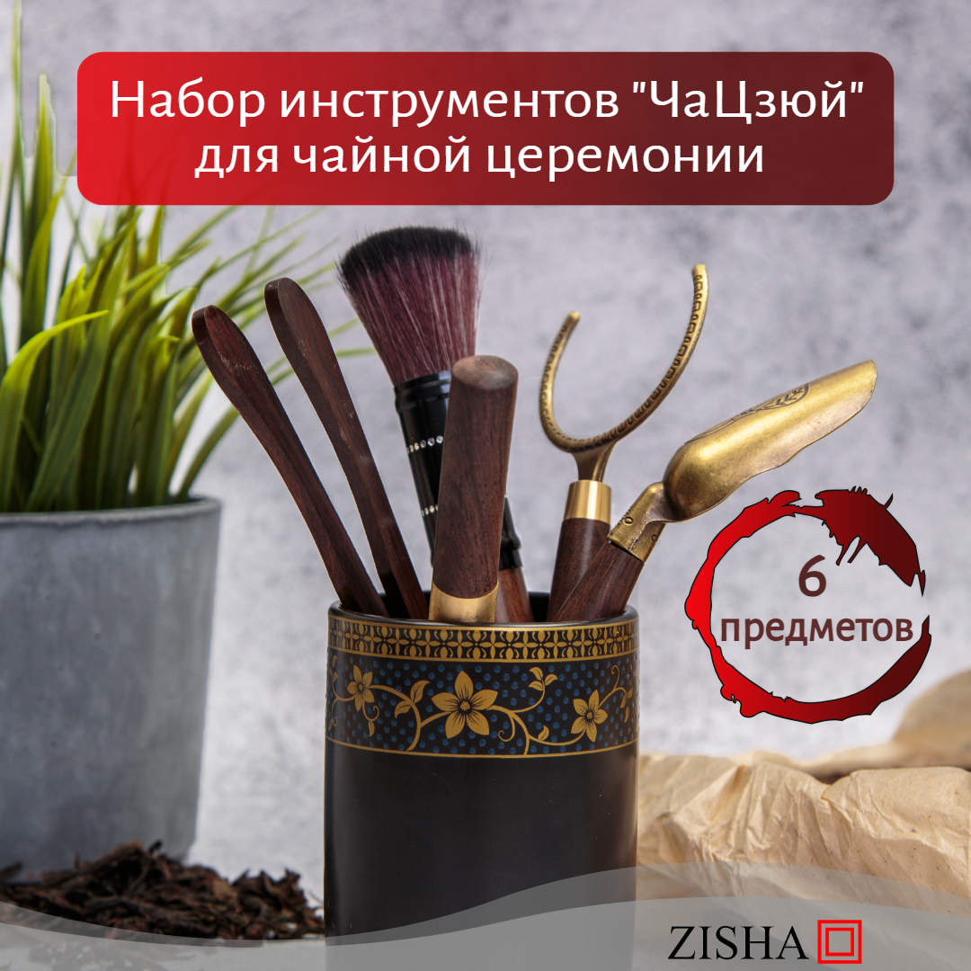 Купить Набор аксессуаров для чайной церемонии Zisha, дерево, латунь