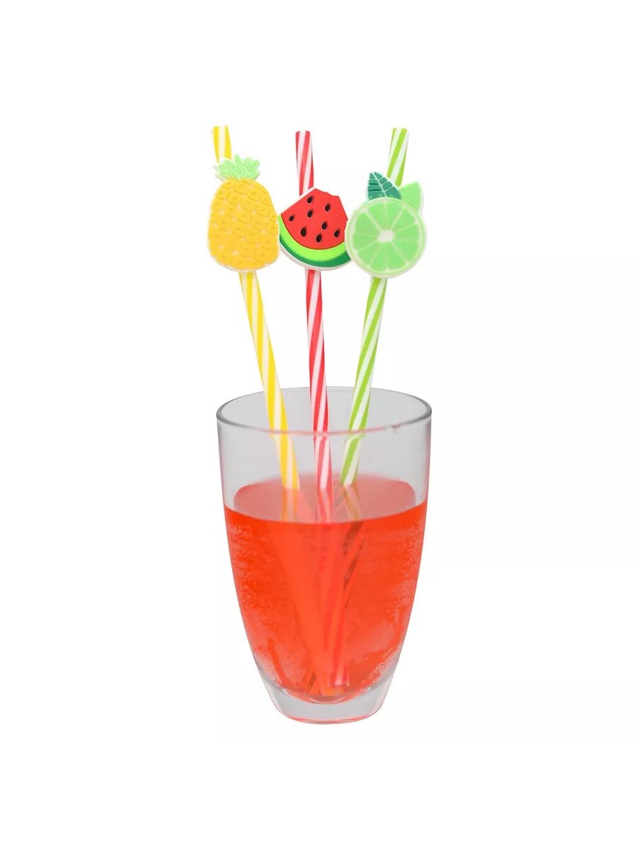 Купить Трубочки для коктейля "Тропикана" 4 штуки длина 23 см диаметр 0,6 см