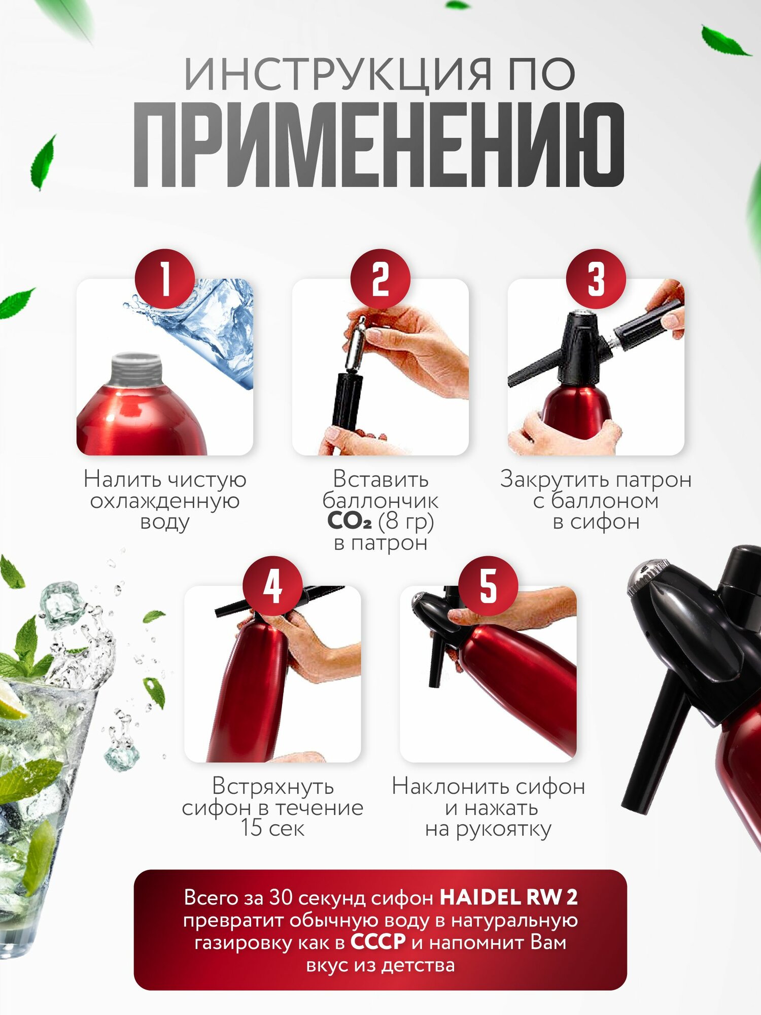 СохранитьСифон для газирования воды и приготовления лимонадов как в СССР, HAIDEL RW 2, красный интересное: