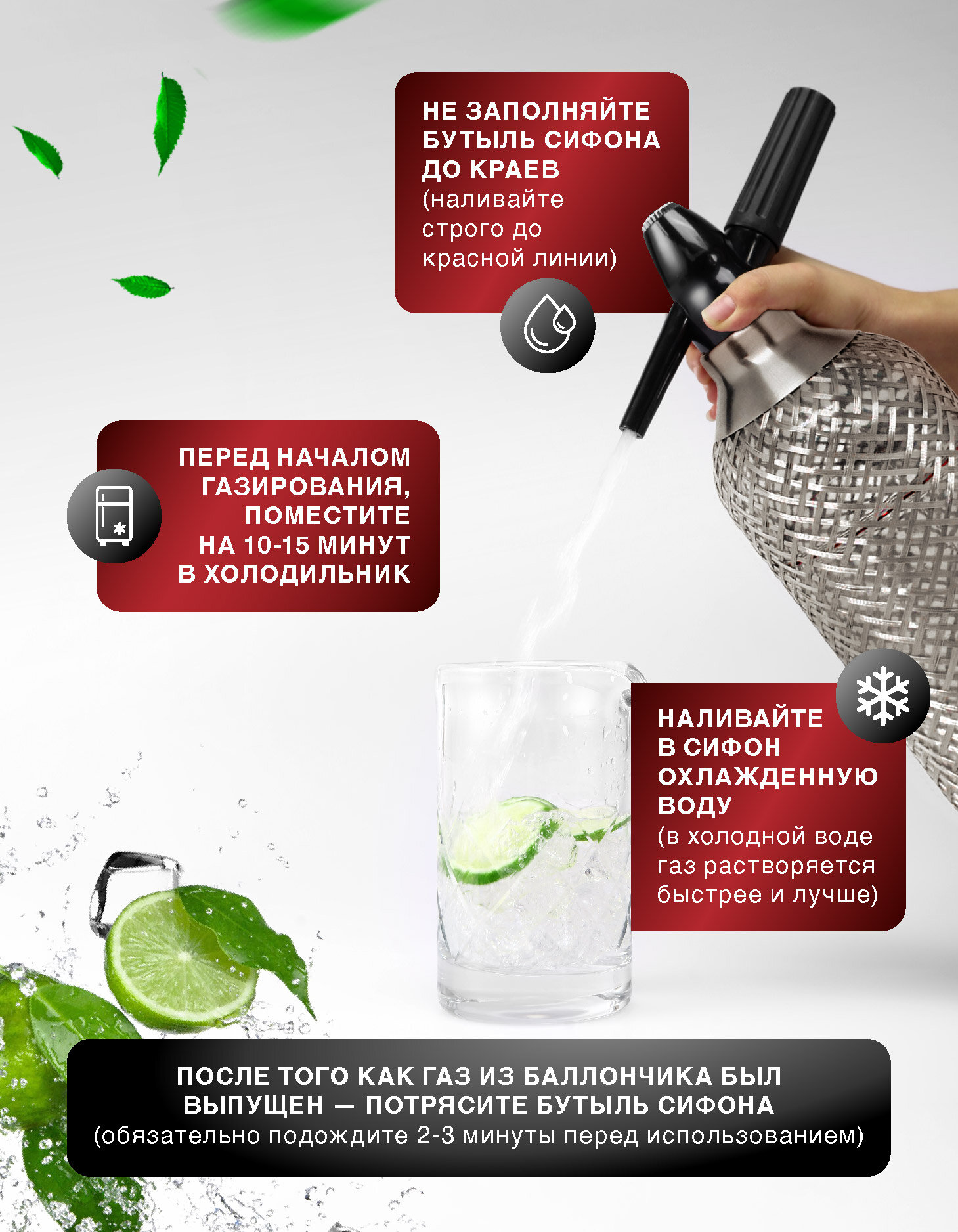 Сифон для газирования воды, стеклянный, 10 баллончиков + сироп для приготовления 5 л натурального лимонада, HAIDEL Classic 80, красная металлическая оплётка